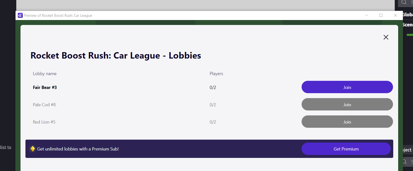 hello, i am wondering if there is a way to change gdevelop’s p2p multiplayer lobby names currently they are pretty stupid like: Fair Bear #1 or Good Duck #6 is there a way to set it to: lobby 1, Lobby 2 etc - i saw a video from about a year ago and the lobby names where just Lobby 1, Lobby 2 etc