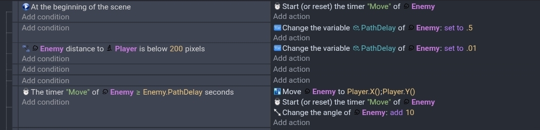 So you set TargetX TargetY to Player.CenterX() Player.CenterY() and now you move your object toward these variables after you set path to it