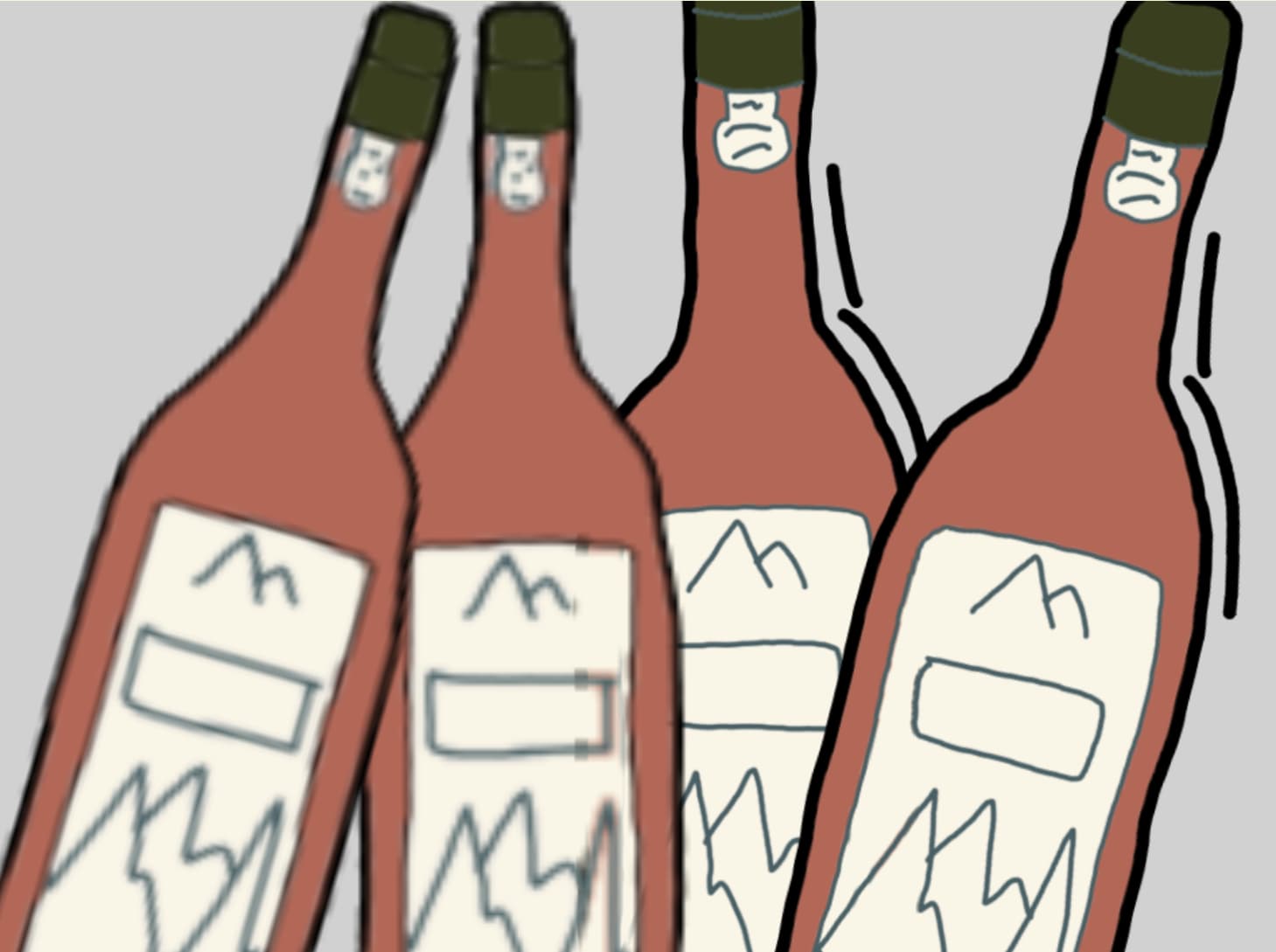 The original bottles were drawn on procreate and are approximately 300*1000. As you’ll see on the screenshots below, the bottles are suppose to look much better, without this weird blurry effect and with quite clear black lines.