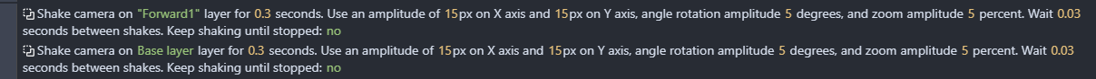 Hi, so I want to make all layers shake the same amount but when I use the camera shake extension >> it only happens to 1 layer and not the other layers Adding an event to each layer >> also doesn’t work