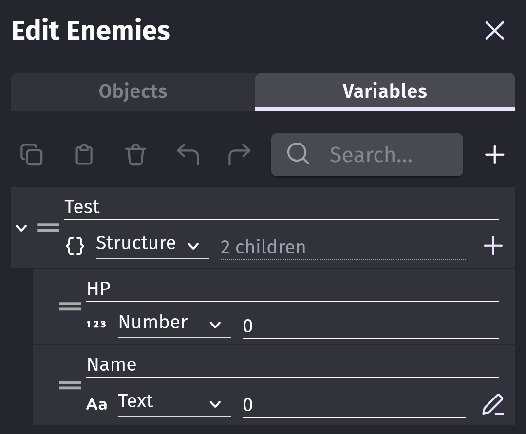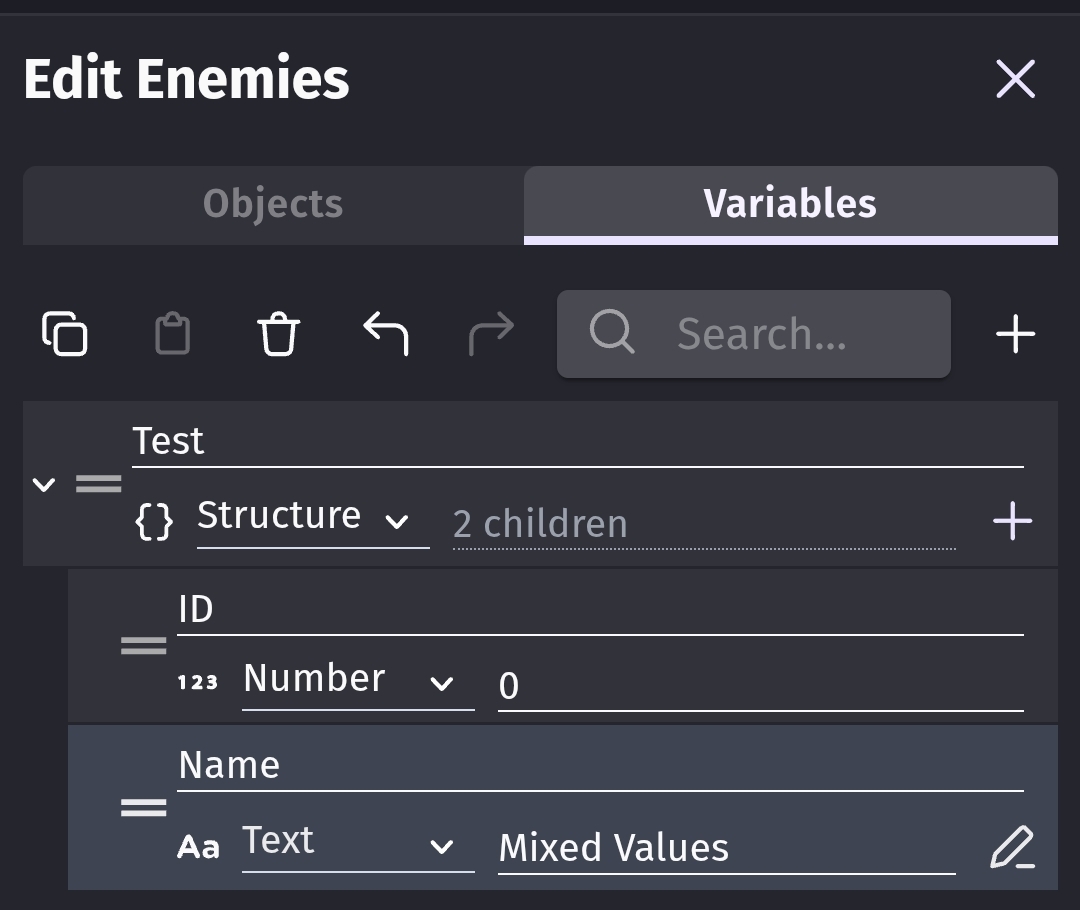 Not the way they’re stored but the way they’re displayed in the group editor. If you modify the value of an object’s child variable, it only changes that object. But the group editor no longer shows the structures children. The children names didn’t change. (That would be a different issue. Structures should always have the same children) Only the value changed.