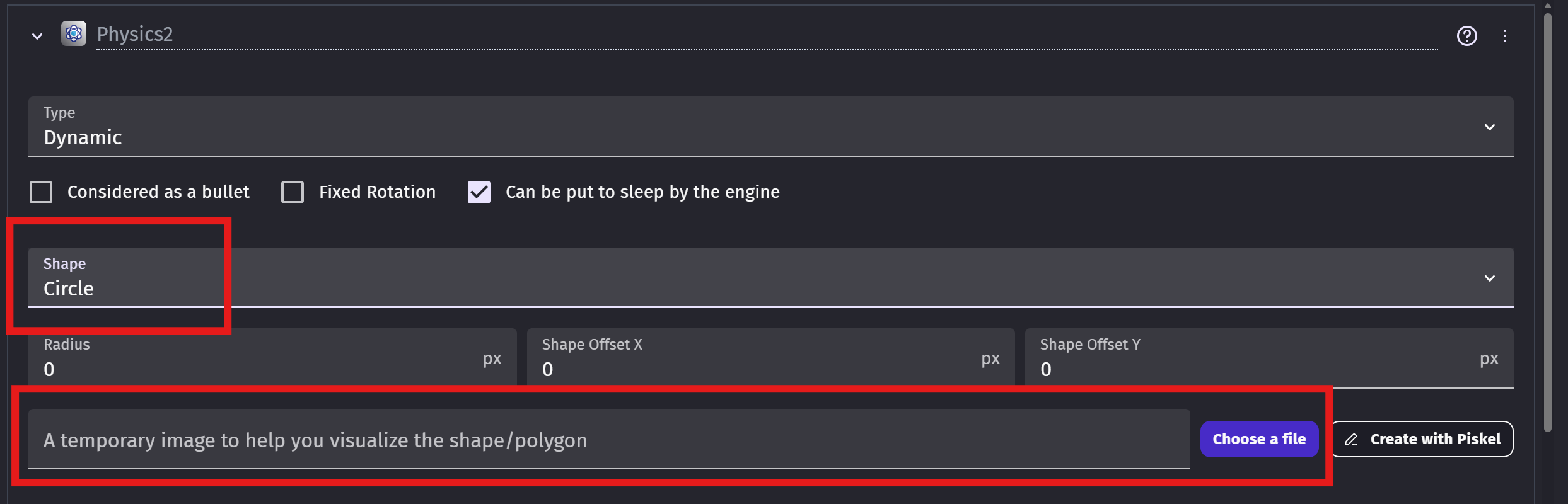 But my problem is gdevelop consider the collision mask of it a very big square.