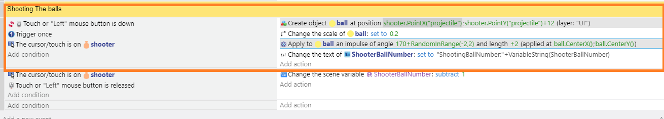 Also, try applying the force at ball.Physics2::MassCenterX() and ball.Physics2::MassCenterY().