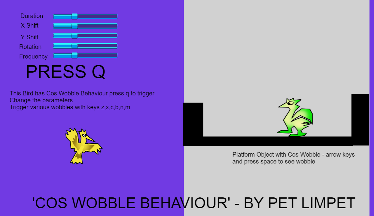 So …with @Bubble 's assistance, I have produced an extension and behaviour called ‘Cos Wobble’ for wobbling/shaking/vibrating/oscillating stuff!