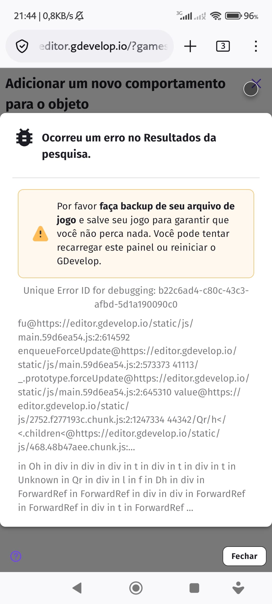 The behavior selection screen is crashing; it seems to crash when I reach a specific behavior. In my case, it crashed when I searched for “multitouch”. *Using Gdevelop on mobile via the Firefox browser