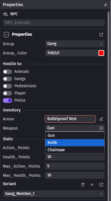 Variables/Properties: IDs, TargetIDs, States, Stats/Attributes