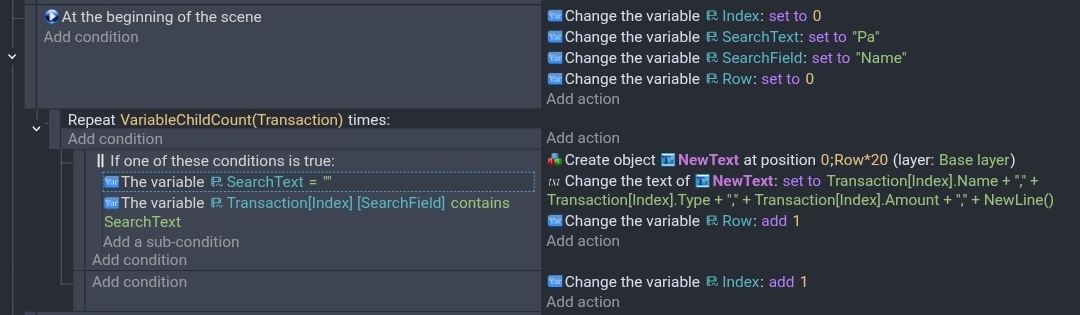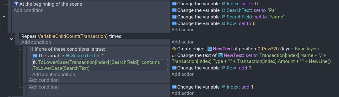 With the list I created with your help it shows all the transactions. The question is how to filter what to display. I would like to add a button “Expenses”. When it is clicked I want to display only Expenses and no Income entries. the type of the transactions (if it is Expense or Income) is stored here: