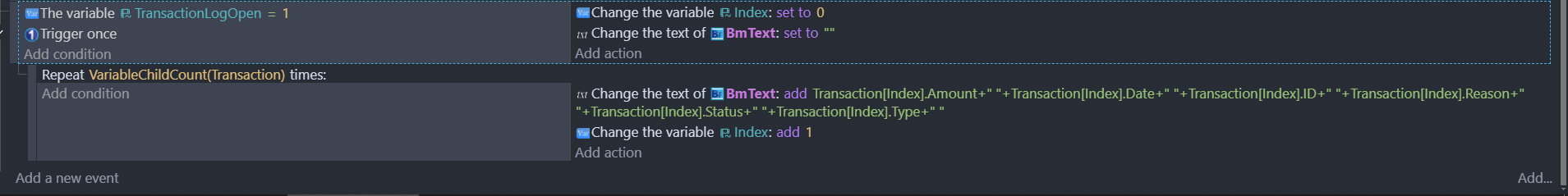 Variable() and VariableString() haven’t been needed for awhile. They’re not needed and just make the events harder to read. You can just use the variable name.