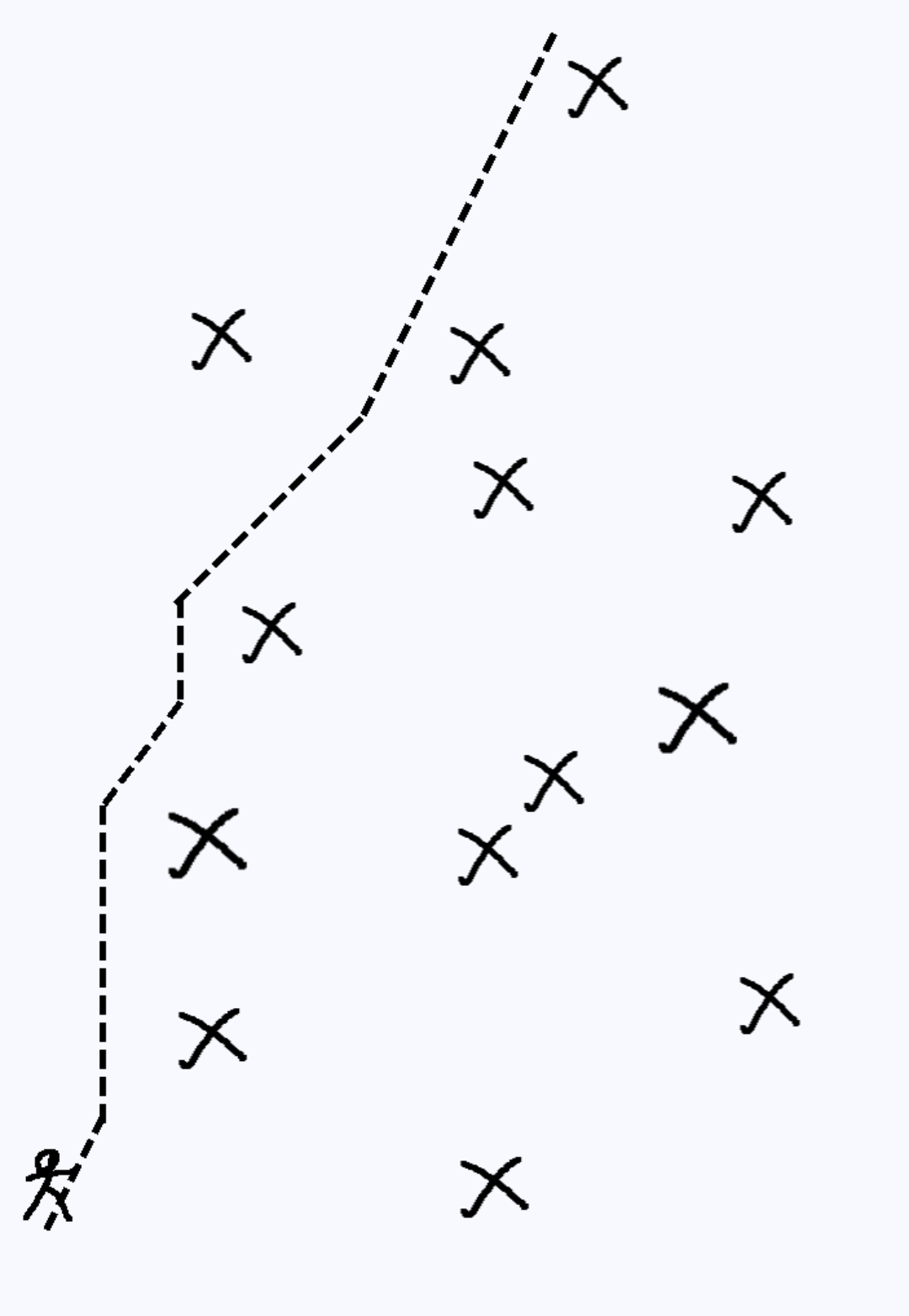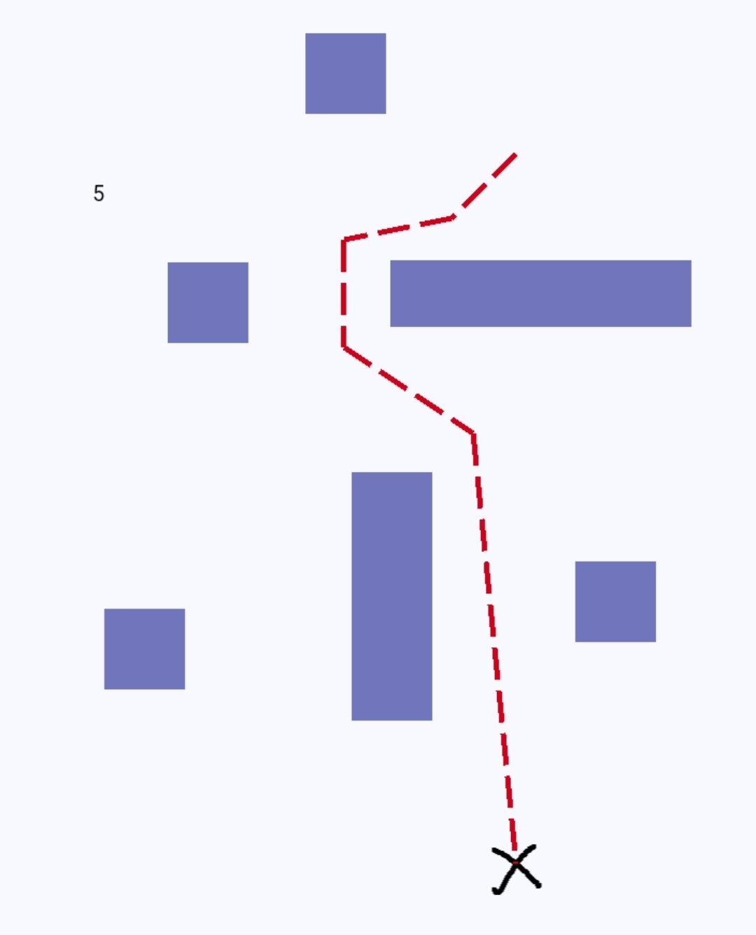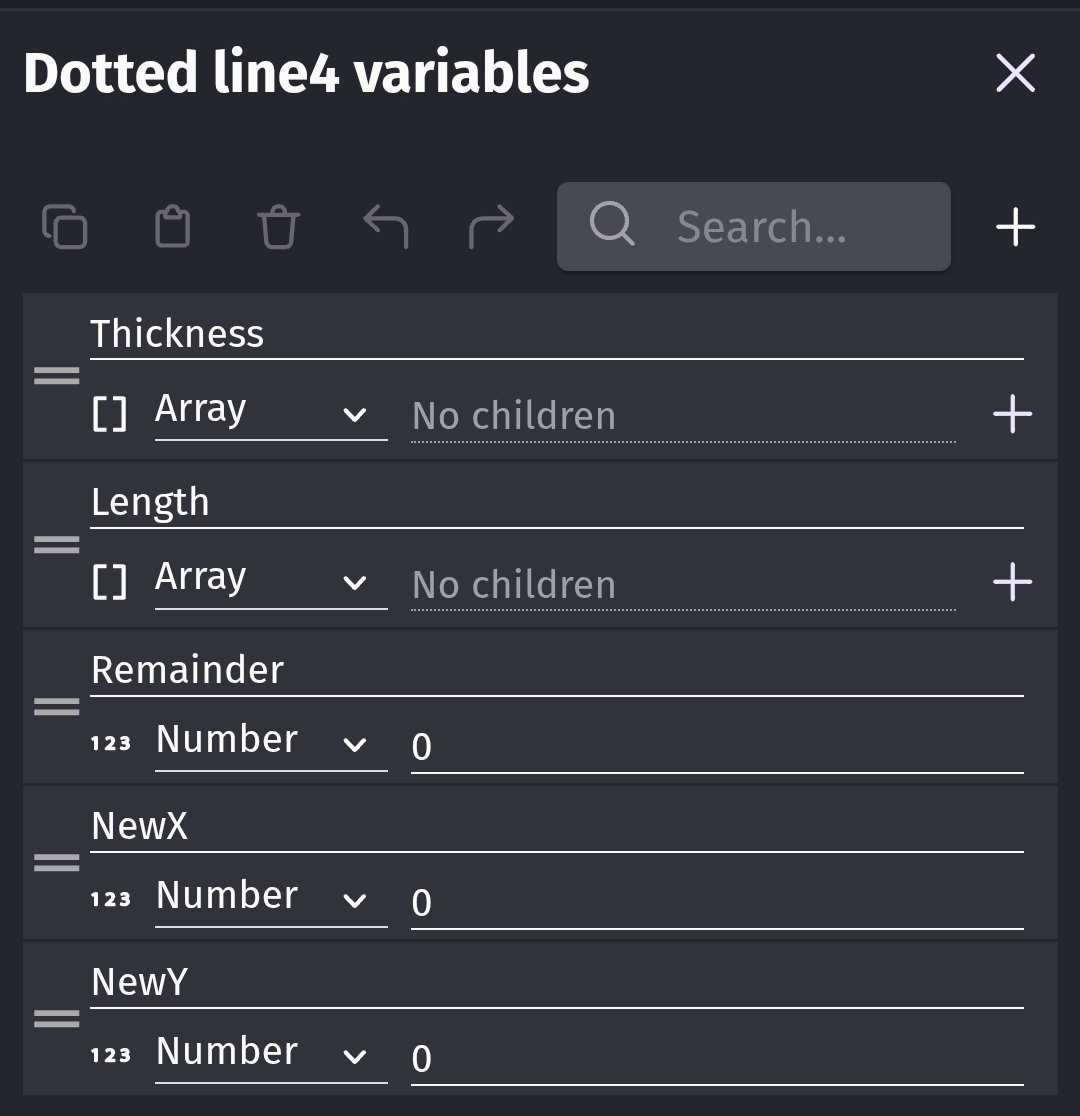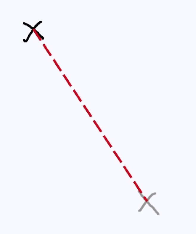For testing, I decide to start with a single line going from a start to an end object. It’ll be easy to switch to pathfinding. I should be able to use the else events to draw the other half of a dash or advance the current x, y for the gaps and switch to the next node.