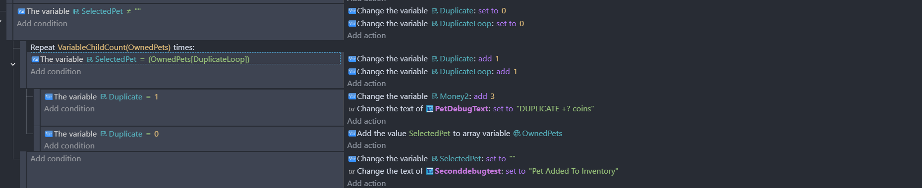 ok ok here we go again, making a duplicate protection, where if the pet is already owned, it turned into coins. Cant seem to make it
