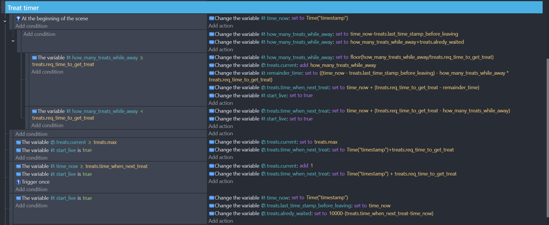 What I’m trying to do here is a Energy regeneration type deal (I call them treats ) these treats are to be used for different kinds of actions in the game.