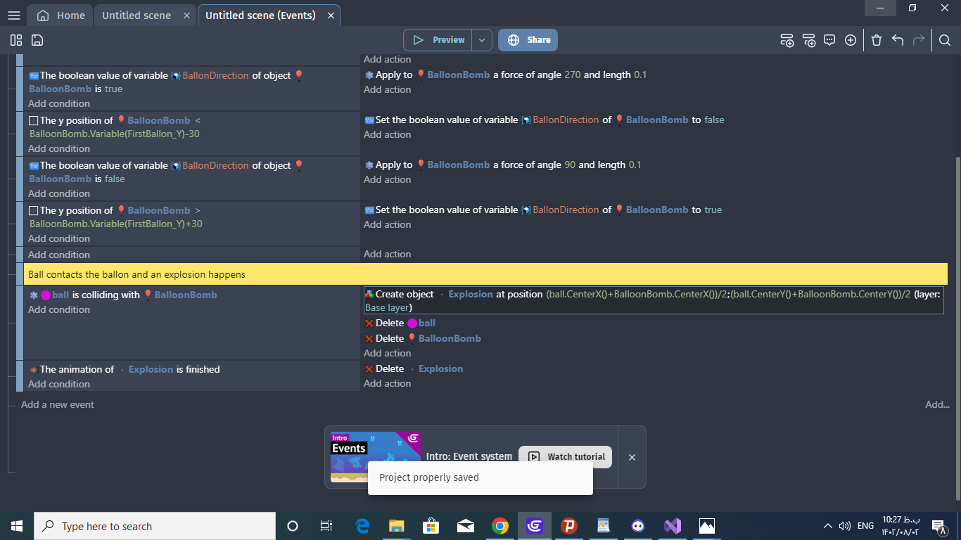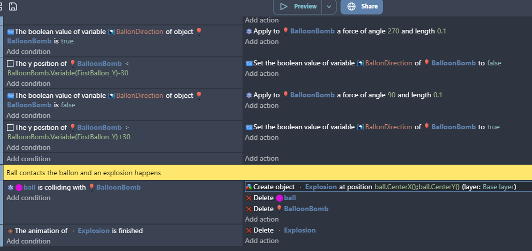 I want after a ball collides with the balloon, an animation happens and the ball and the balloon to be removed.