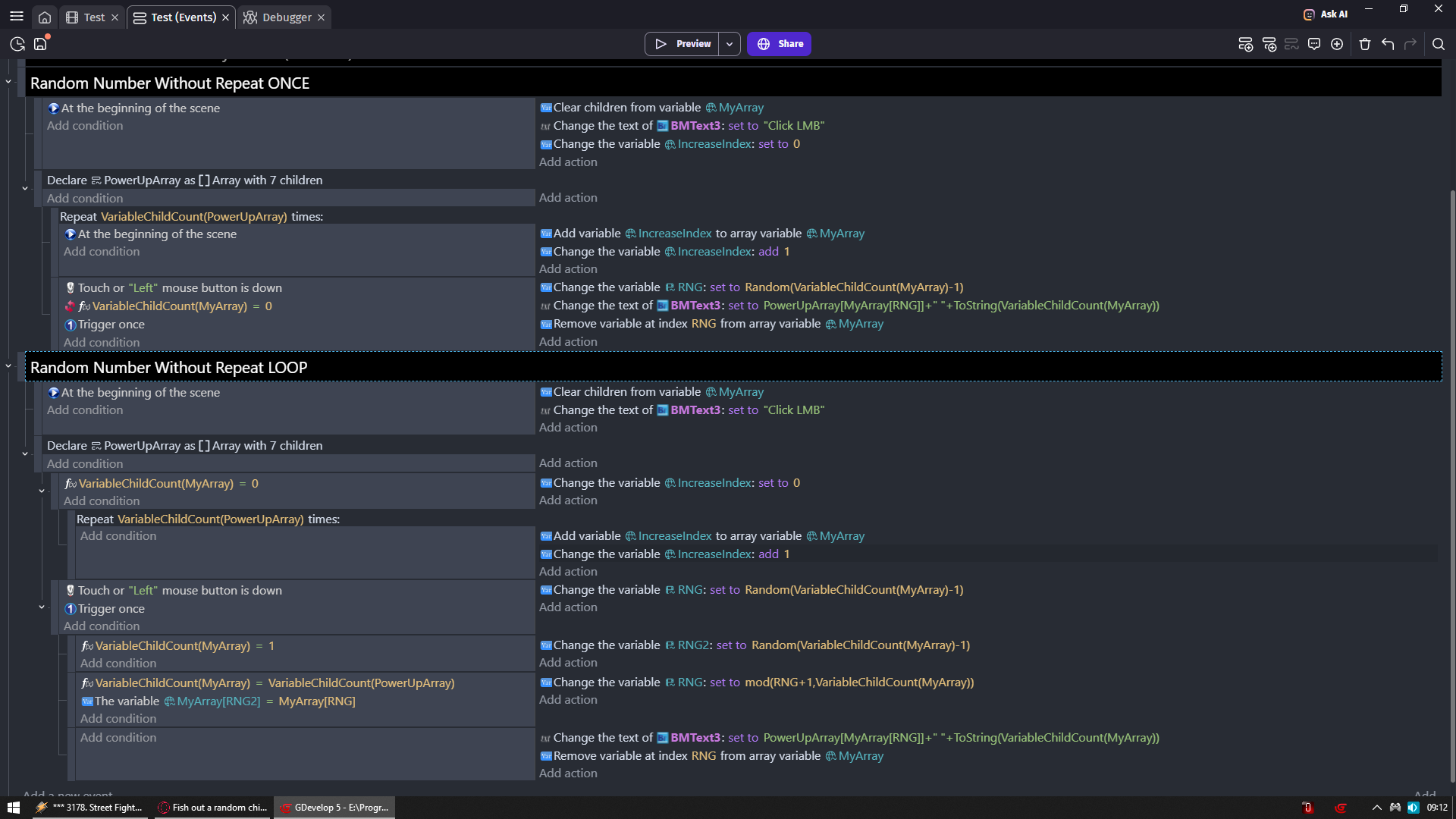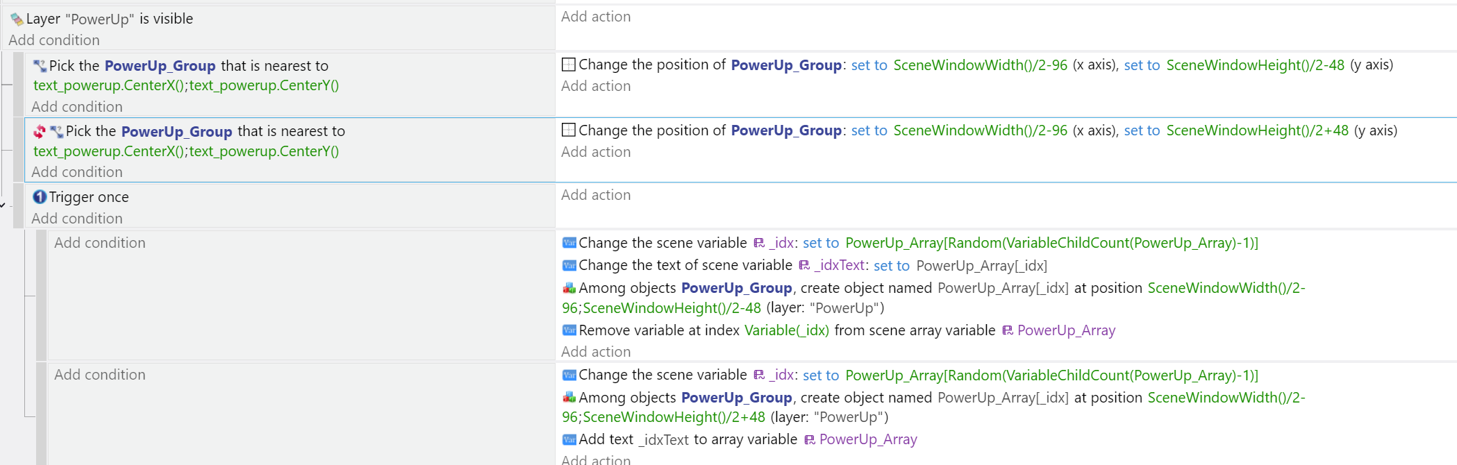 I need two random power-ups to be created when the power-up layer is visible, without repeating the same one.