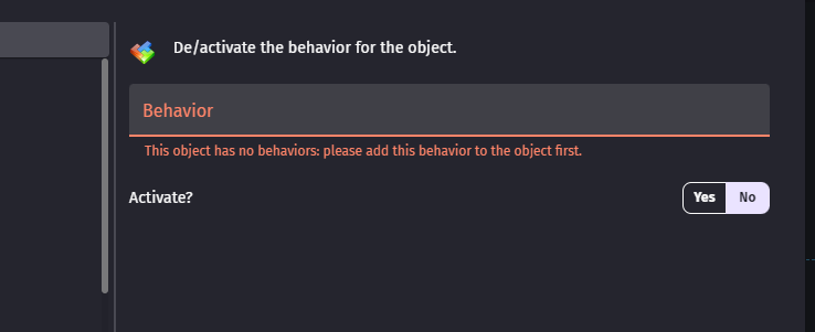 behaviours no showing up when looking to deactivate? - ‘this object has no behaviours’