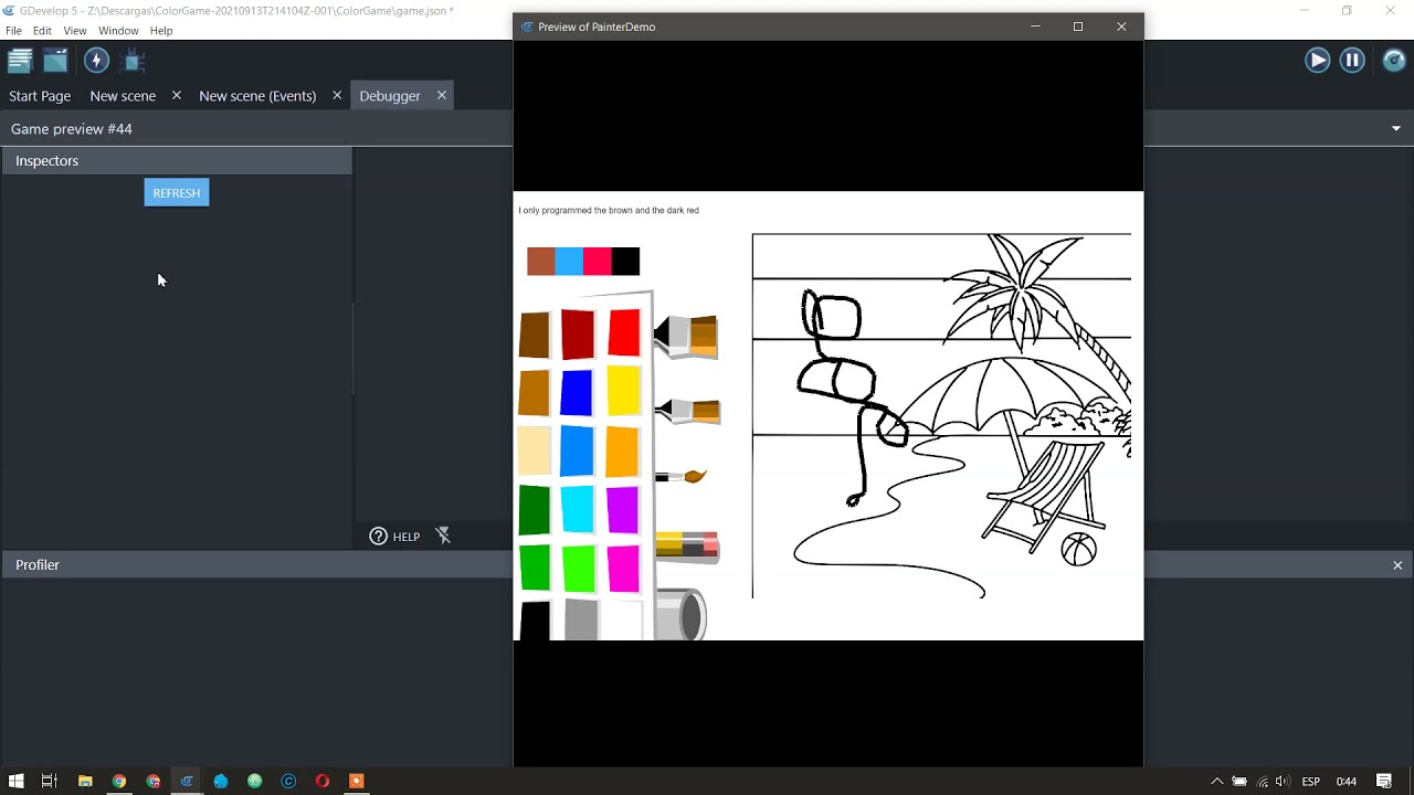 I added “Touch or Left mouse button is down” and a “Cursor is on top of…” conditions so that the player can change colors by selecting them, but they won’t work.