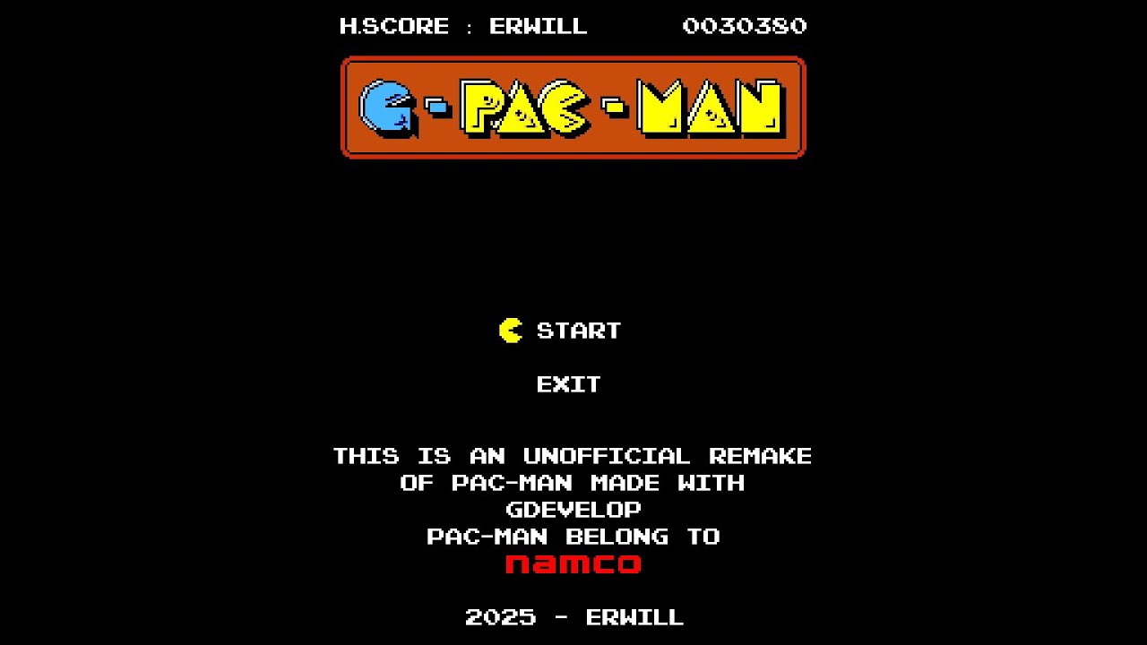 Sans prétention, G-Pac-Man est un projet test sur GDevelop pour pouvoir maîtriser le logiciel et développer une méthodologie là-dessus. Le but était de se rapprocher du jeu d’arcade d’origine, tout en prenant quelques libertés.