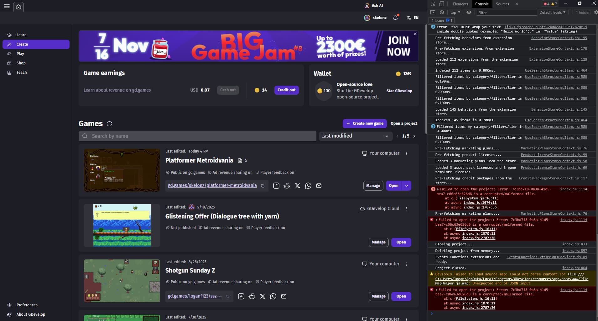 Now my project wont open, it was a local project but I don’t remeber where I had the json or the project stored at, and when I ctrl shift I it dosent give me a file location its just random characters. Please help, I’ve put so much work into my project and I’m quite upset that updating the engine has done this. The other thing is, the project started as a cloud save but I moved it to be local, but there doesn’t seem to be a folder for my game in my gdevelop projects file or anywhere on my computer, but up until this update it was running fine?