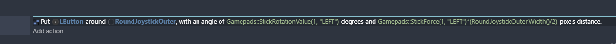 You can translate the two parameters (Joystick rotation + Joystick force) to whatever you’d like. Whether that be full-screen movement (0 force being the center of the screen, full force (1) being to any side of the screen), or some form of fixed minimums/maximums.