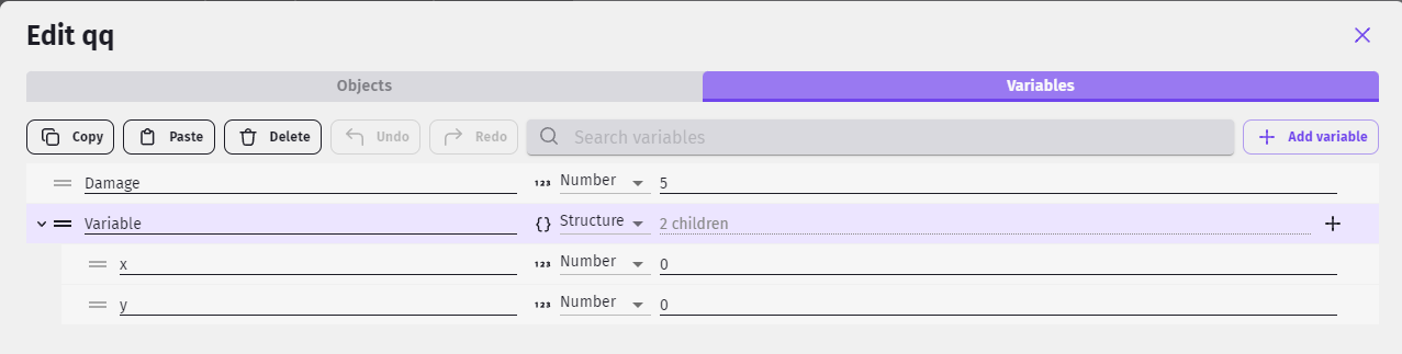 When I open the Group Variables tab, I see the structure variable “Data” with “mixed values” as children. There is no ability to drop down a view of the common children in Data. Again, SpriteA has some different Data children than SpriteB, but also some in common. I would like to see the children they have in common listed in the Group Variables tab within the Data structure, but do not expect to see the children that are different. I can’t tell if you are building your objects the same way (with different structure children) from your example. Maybe this isn’t possible with structure variables once you alter the children to be somewhat different, but that’s what I’m curious about.