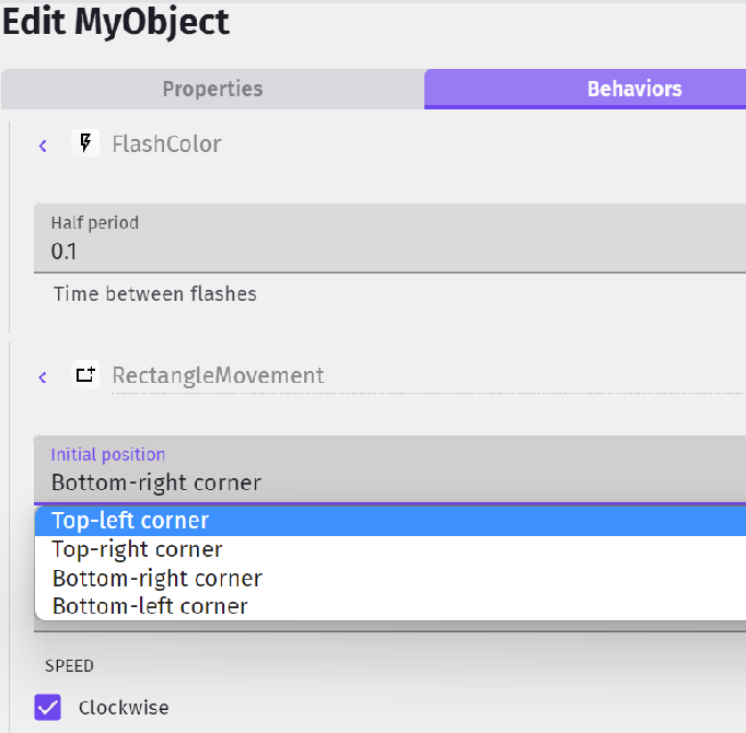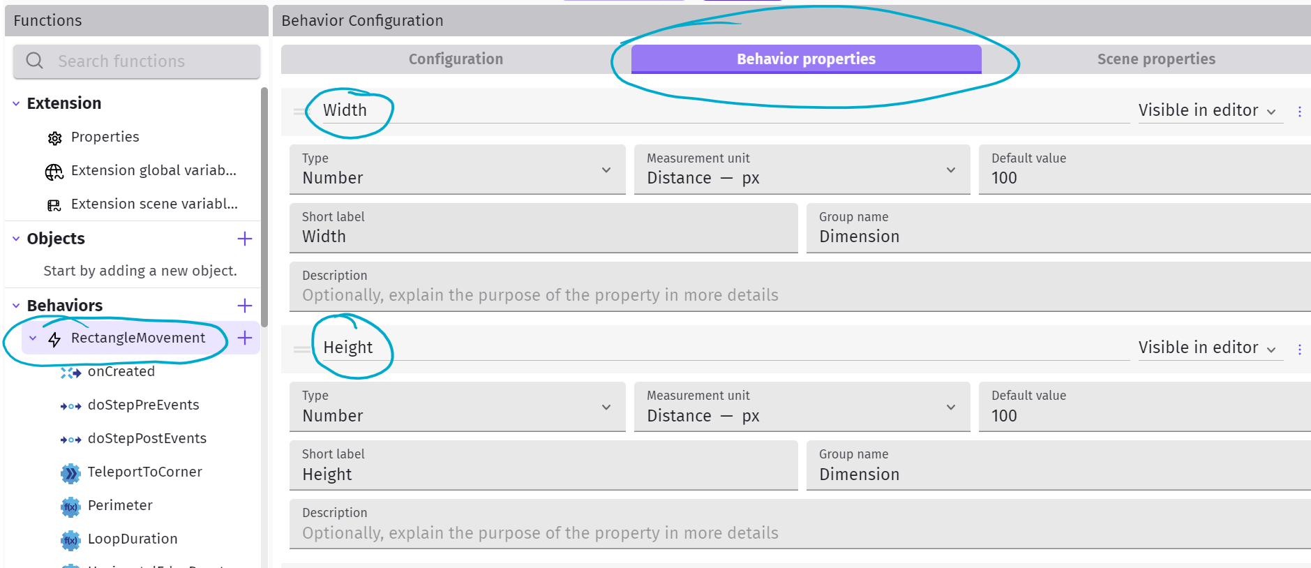 The Rectangular Movement behavior has some number properties like height and width. These properties let the user of the extension change it to what they want.