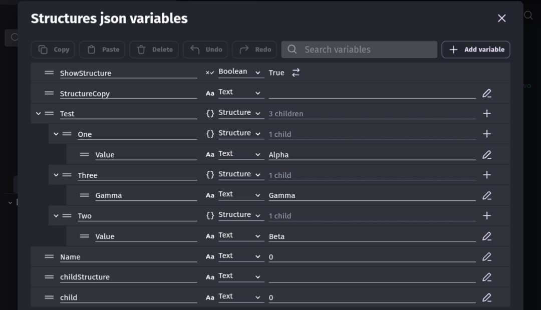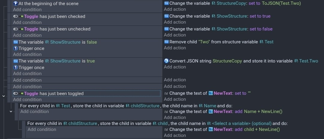 I’m using a single structure variable with a list of powerup text inside, and it doesn’t recognize your “ToJSON(Test.Two)” variable, probably because they’re not structure variables.what I would like to hide is powerup n.0 powerup1