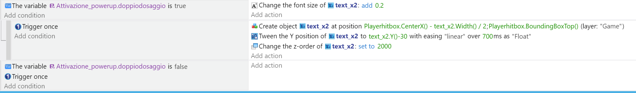 The child’s deletion or hiding must last as long as the variable Attivazione_powerup.doppiodosaggio remains true.