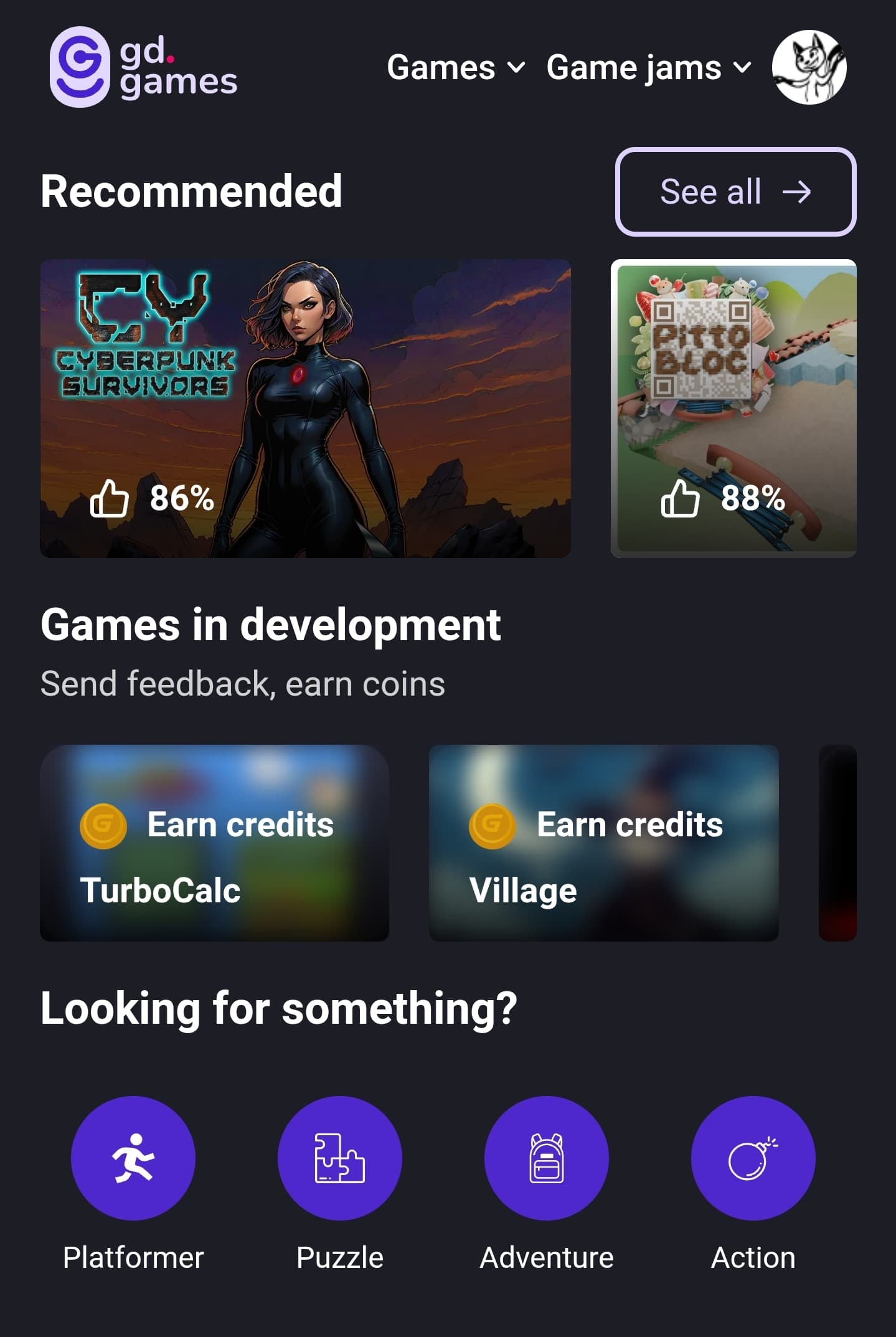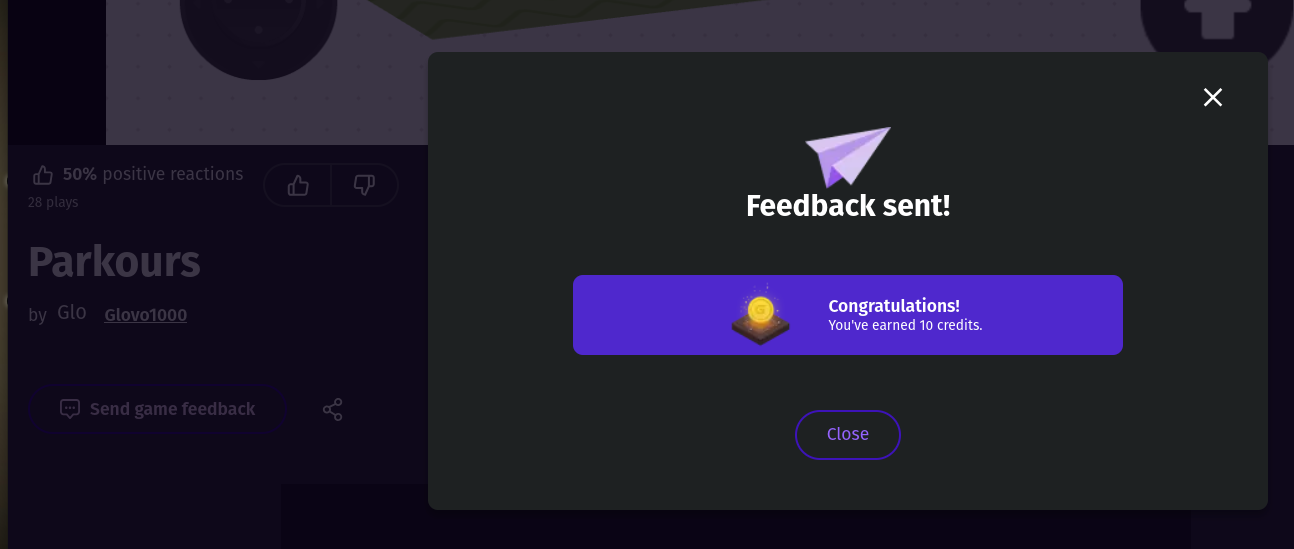 Leave feedback on the promoted games on gd.games. Seems to be 5 credits half the time and 10 credits the other half.
