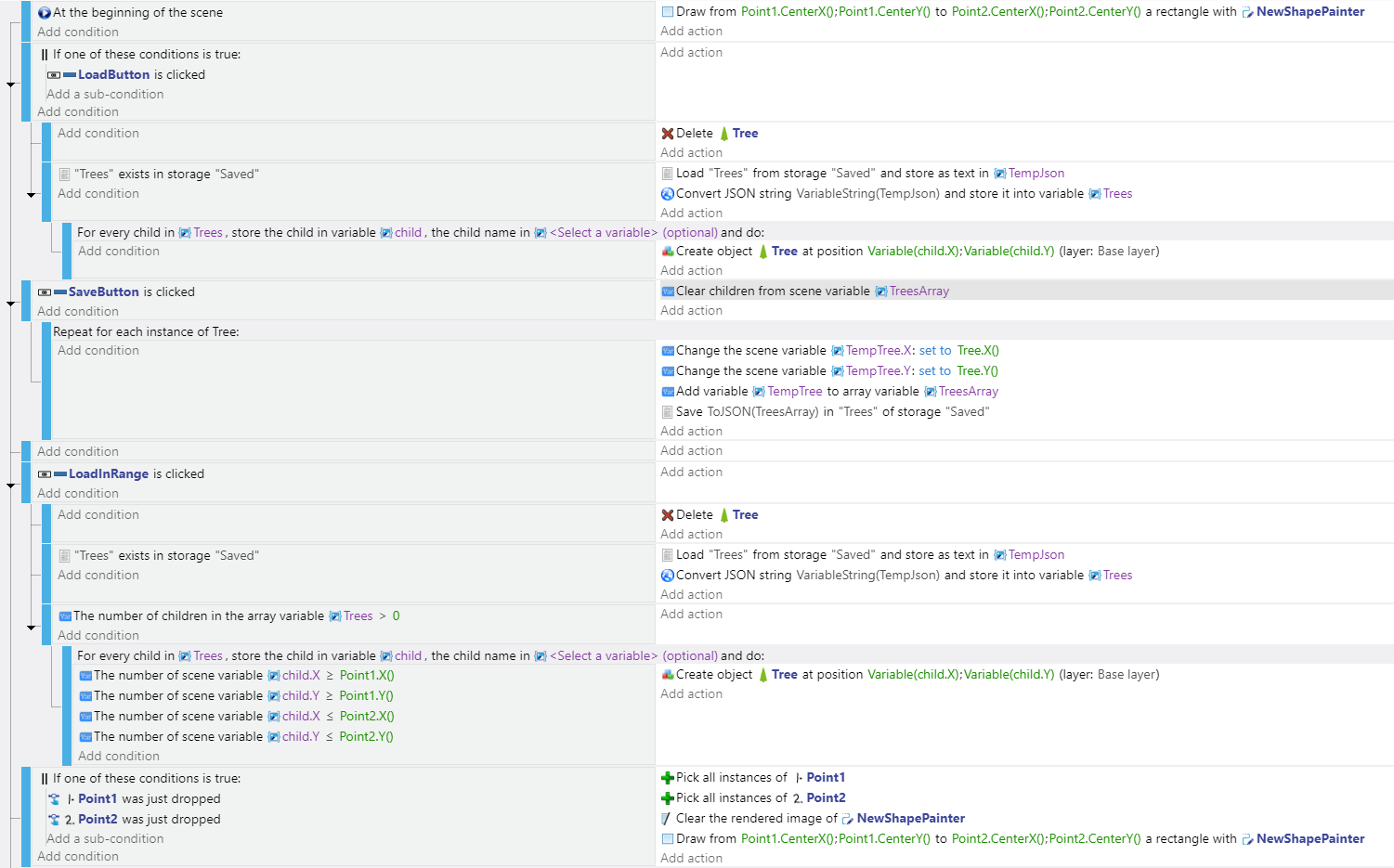 Edit: I had to modify the project files. it was deleting the trees if there wasn’t saved data. So now it will start with the default trees unless you click load. Since I already posted it, I wanted to do a quick fix.