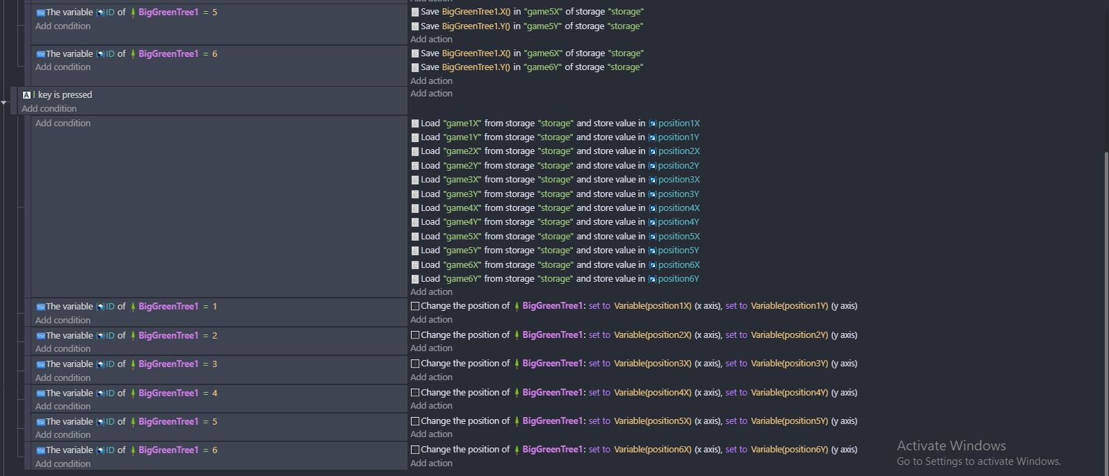 and other environment stuff and it also helps the performance because i can delete an item if not on screen and spawn it again if on screen because it runs like 20 to 30 fps on phones cuz its pc and mobile game and its just six trees but the code is very long