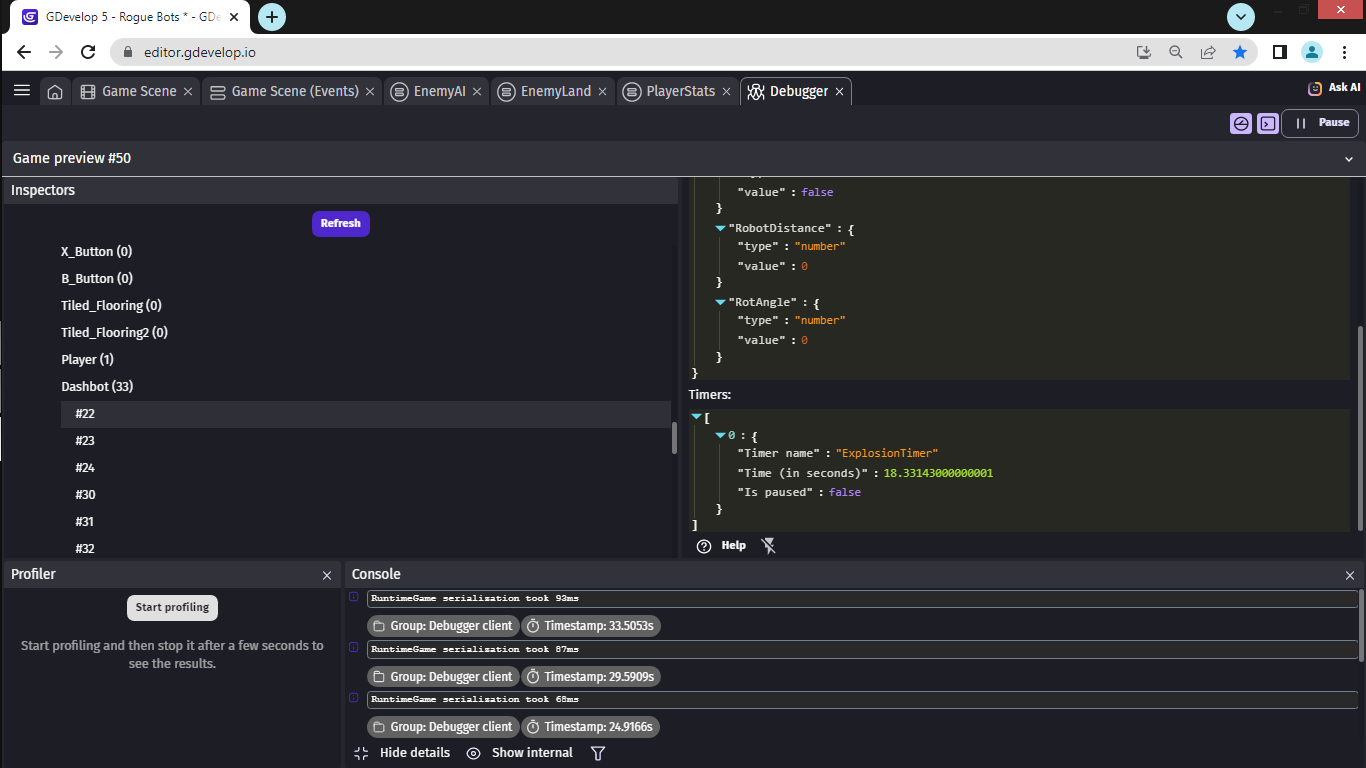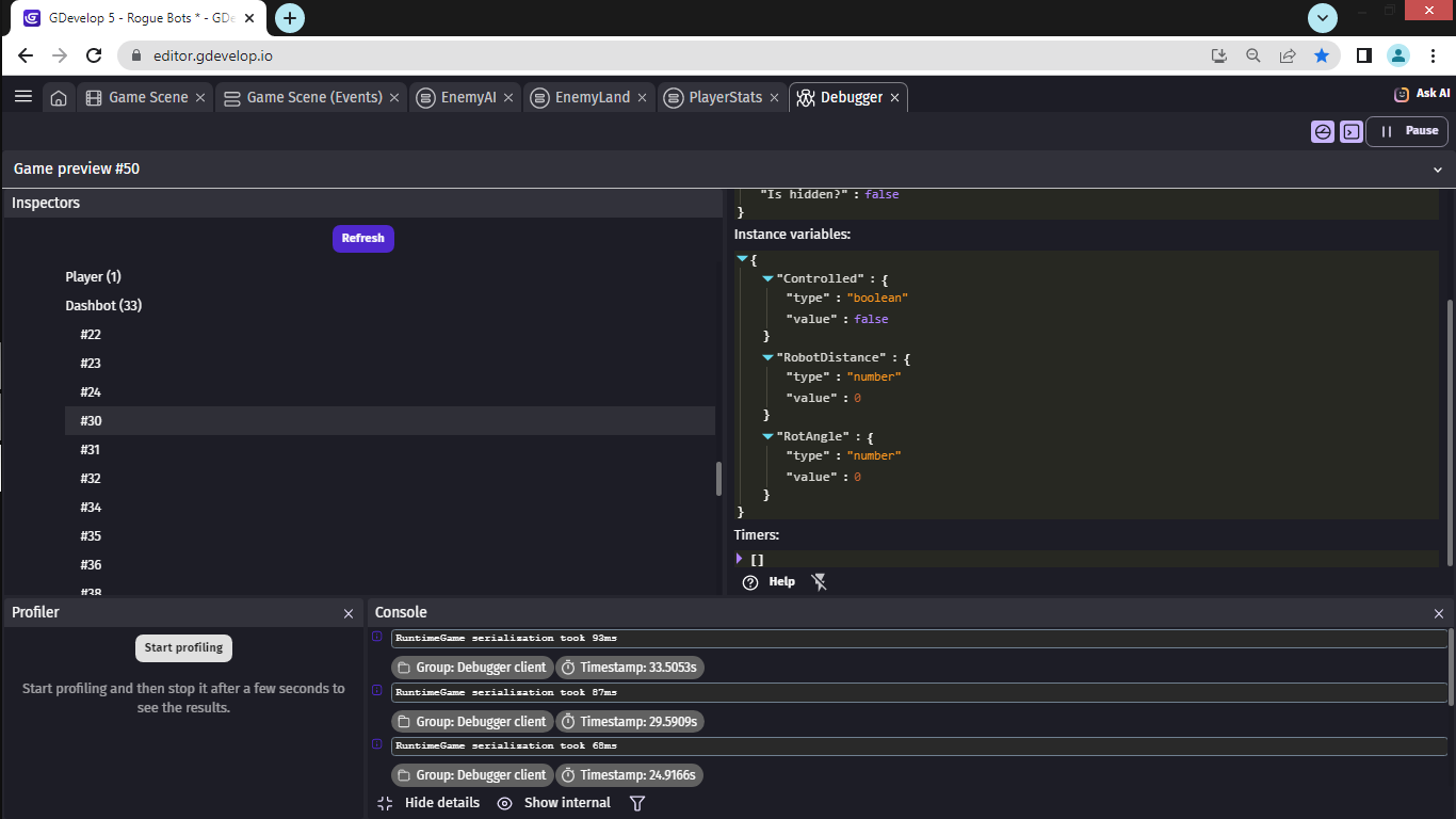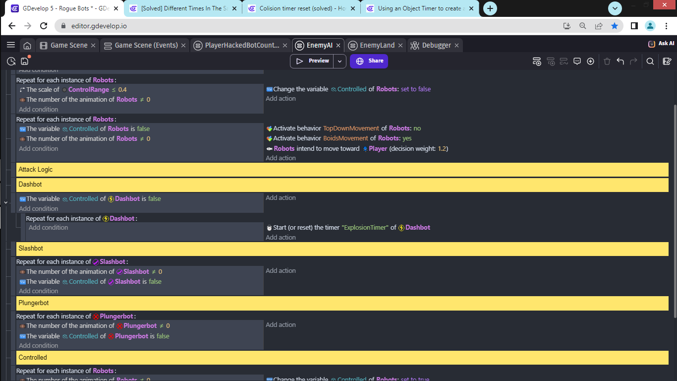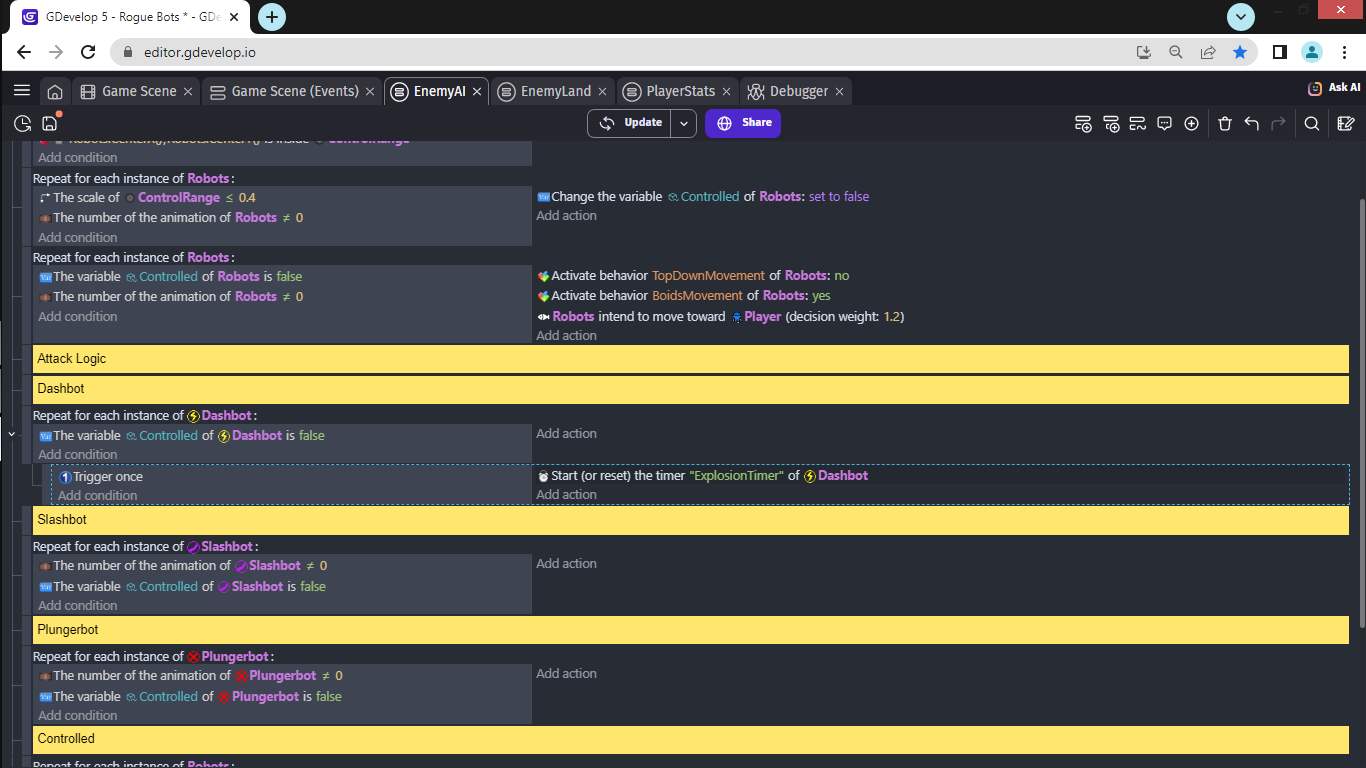 is that the only event for dashbot? Have you got all the events for dashbot in one place? If I’m using a repeat for each I tend to keep all the conditions as sub events of that repeat and pull all the events related to that object under one repeat for each. It’s also a good idea to use event groups too and put the code relating to that object in there as you can then see how it’s performing in the profiler.