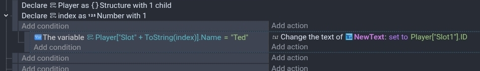 I have tried Variable(structure[object_string_variable][“child”]), I should probably have mentioned that it includes an object variable if that changes anything. I also tried DialogueTree::Variable(“structure.”+object_string_variable+“.child”), and an approach that uses a repeat for each child loop that checks for the desired name (the last one didn’t make sense, I just got desperate) can you explain why these didn’t work? (aside from the last one) keep in mind that I need to reach it with the name rather than the index to make the system more flexible