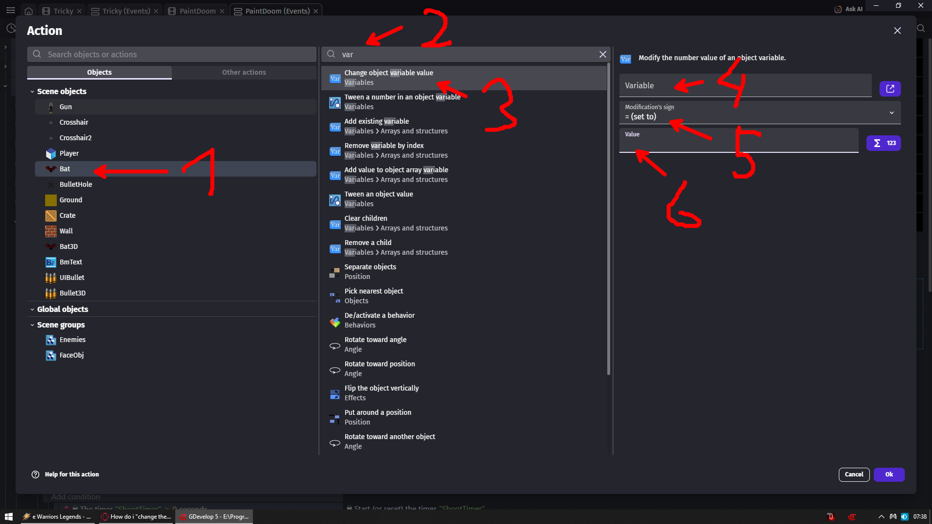 3 - select change object variable value action