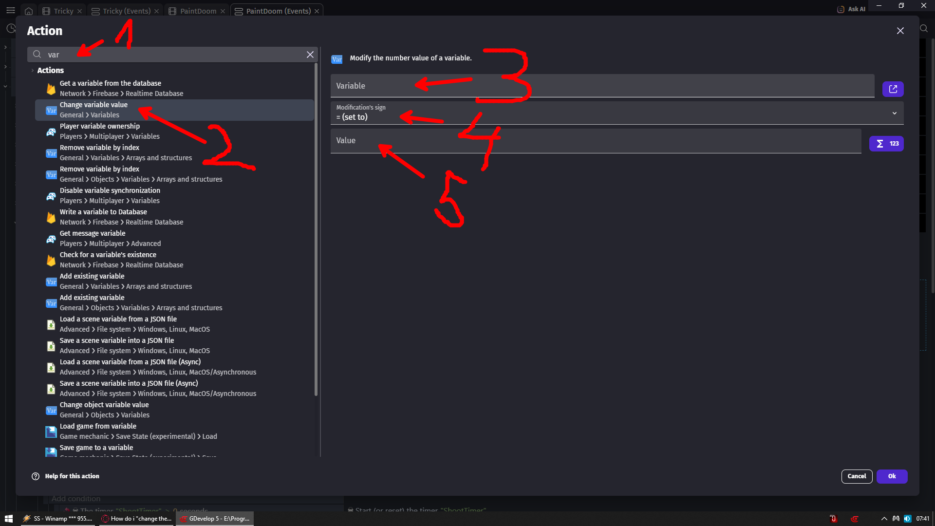 2 - select change variable value action