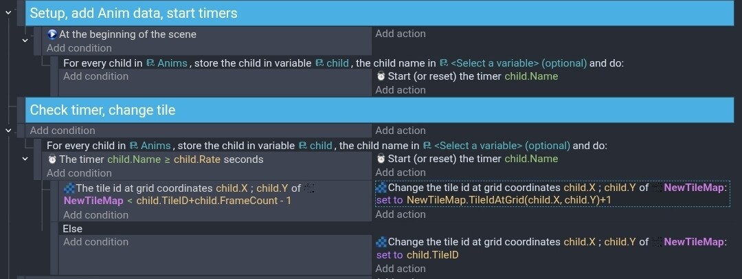 If you wanted to animate multiple tiles then you could create an array of structures with the tile ID, row, column, starting tile ID, ending tile ID and even the animation speed if you wanted different rates. You could then use the array to create individual timers which would loop through the tiles.