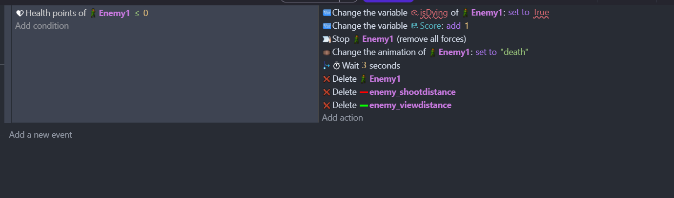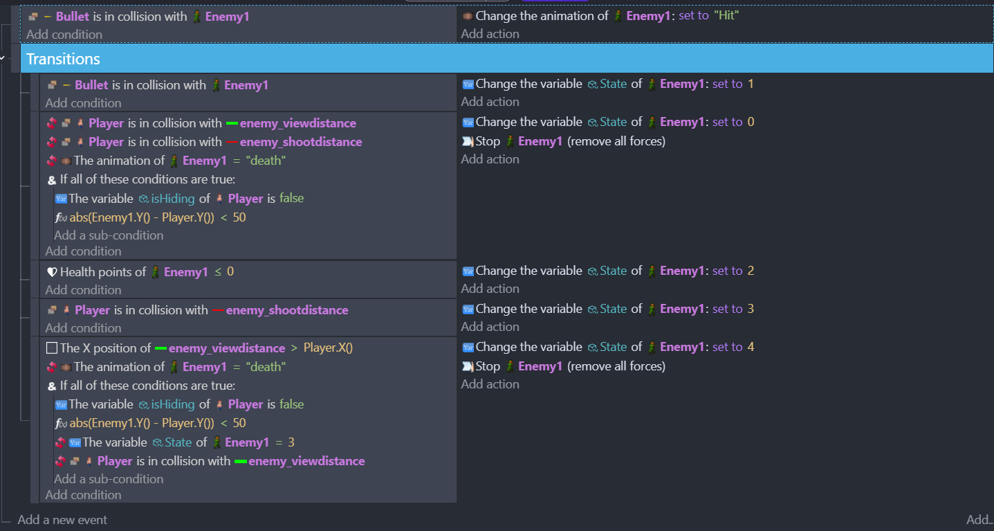 I don’t know of a better way to have the enemy actions trigger only at set distances within visual range. I have these ‘enemy_viewdistance’ and ‘enemy_shootdistance’ collision objects setup on each enemy to help control when they will ‘detect’ the player and when they will stop within range to shoot.