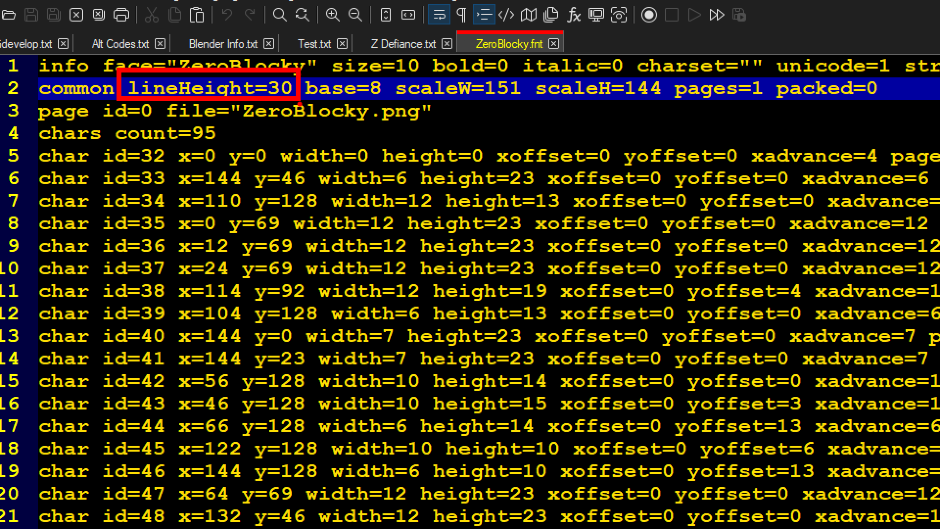 I tried making the line height something small like 20 (by creating a new font file) and nothing changed