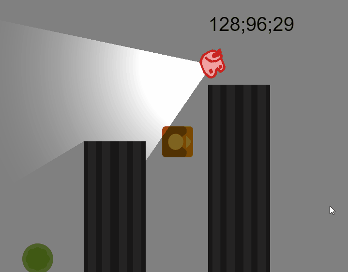 This is with a light source and read pixel - the text is the r;g;b at playerx, playery