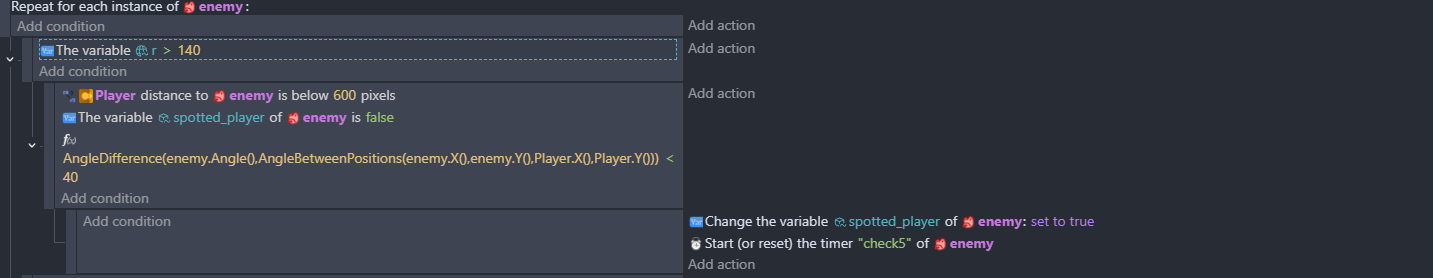 Thanks for that …it’s not raycasting though. I was thinking of alternatives to raycasting. I’m not saying these are better than raycasting… just alternatives. The one with the three cone shapes for each enemy is more complicated than the light obstacle one. The light obstacle one is based on what mr men did in the thread i mentioned above but i’ve added the player pixel colour being read …its a light sensor. I used to play torch tig when i was a kid …it’s a bit like that.