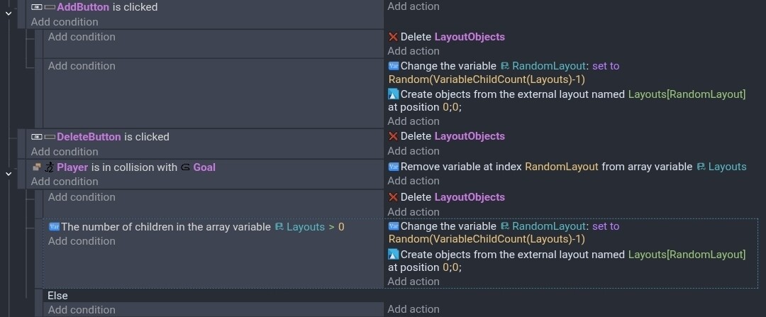 You can add layouts with an expression. So, if create an array with the names of the layouts then when the player collides with the target object then you remove that child from the array of layouts. When the array is empty then the player wins or advances or whatever. You can’t remove a child by name, you use the index. So, you either need to keep the index in a variable or use the find function in array tool or manually search using a for each child event to get the child’s index number.