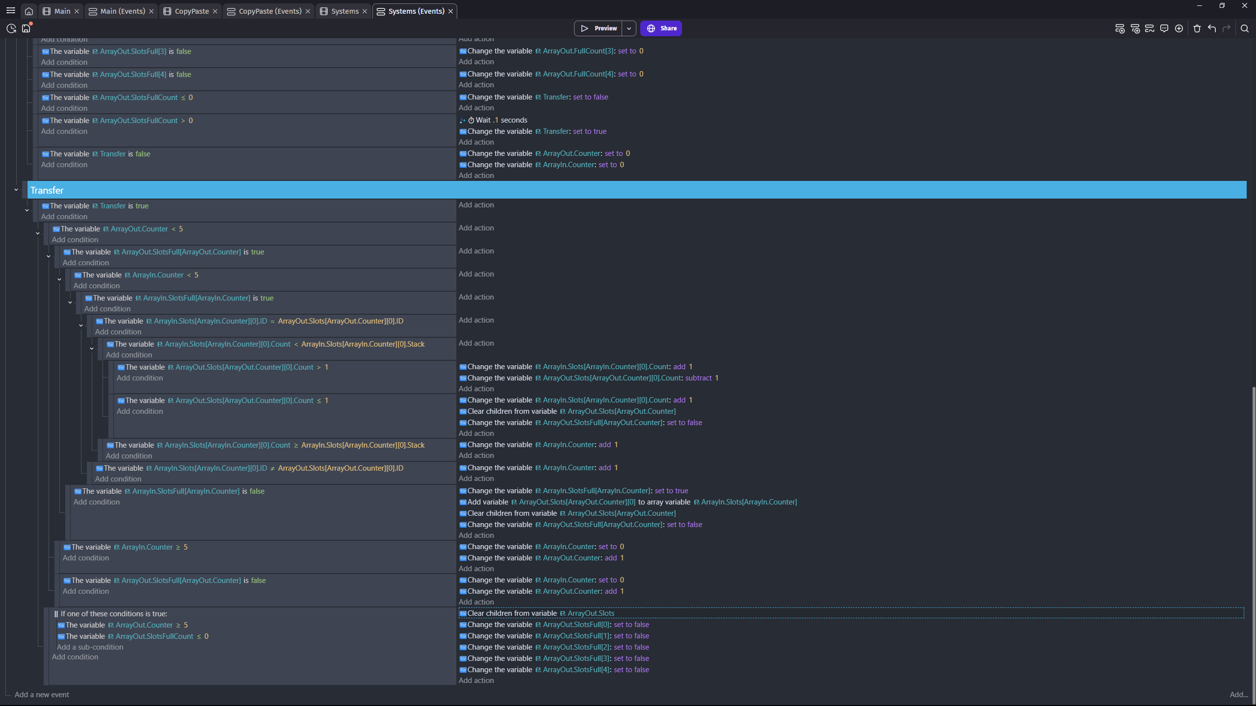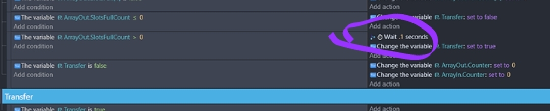 The first transfer works smoothly, but after that, empty variables are created in the receiving array, in addition to the regular items. I made an event to check, and the child count of the array slots that are giving are higher than 1 when this is happening, which should not be the case, but for the life of me I can’t figure out how or why. Any help would be greatly appreciated.