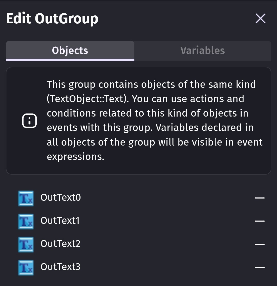 Set text of OutTextGroup to “OutSlot”