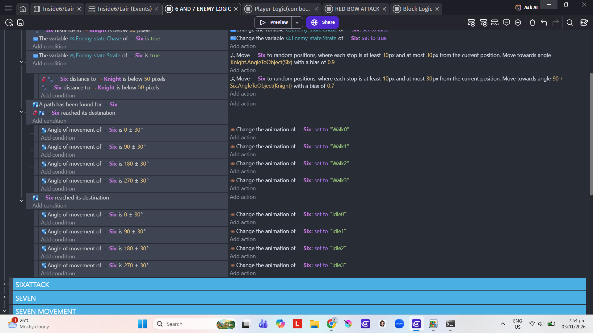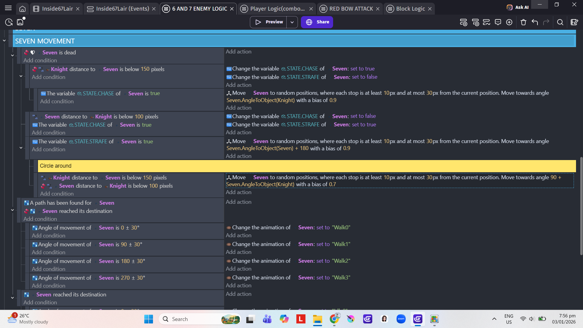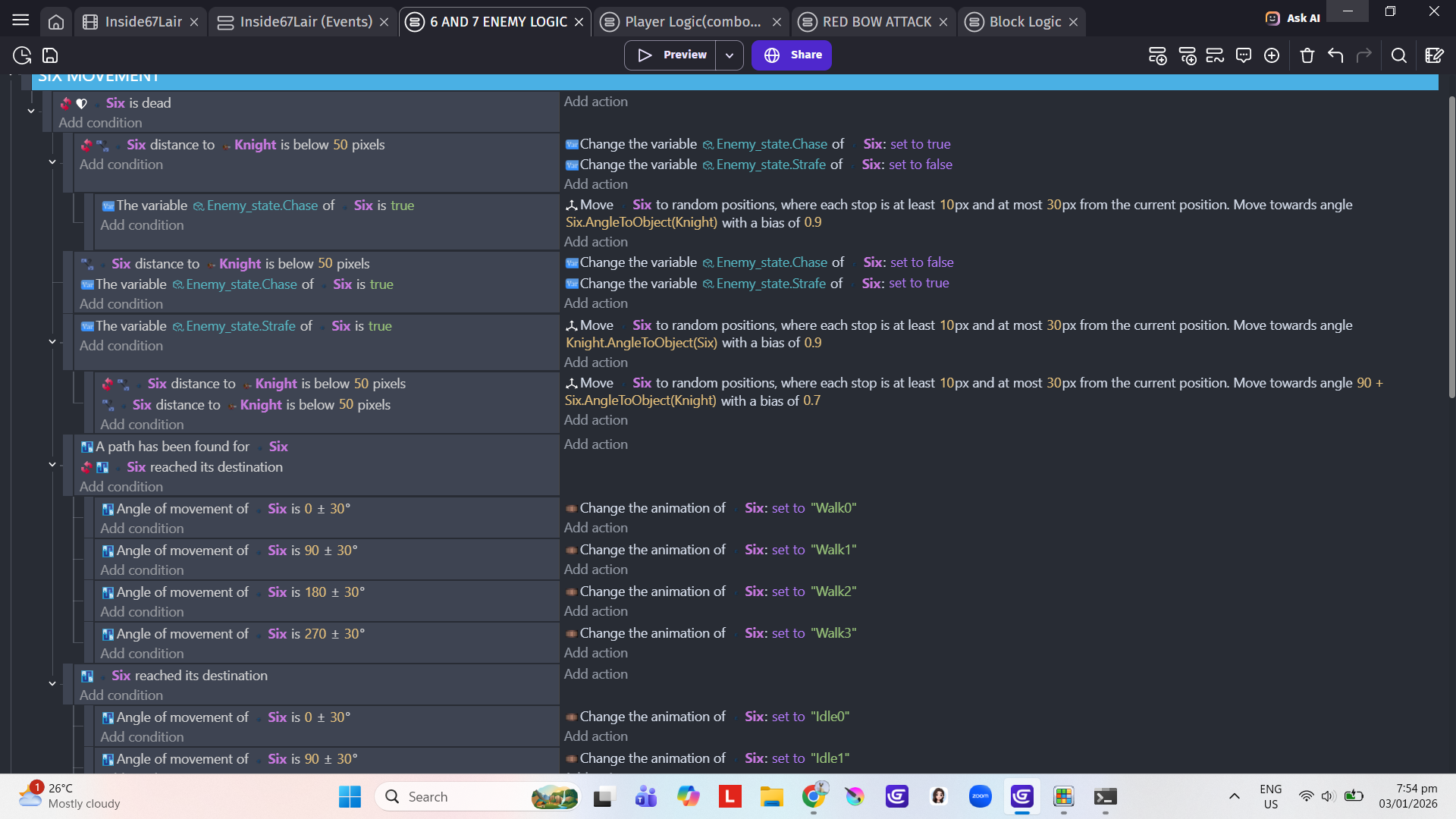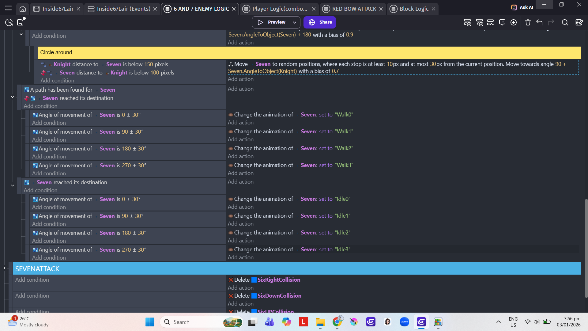 I’m not putting an attack state for both enemies since I don’t know how to make the ai know if its in the left, right, top, bottom of the player