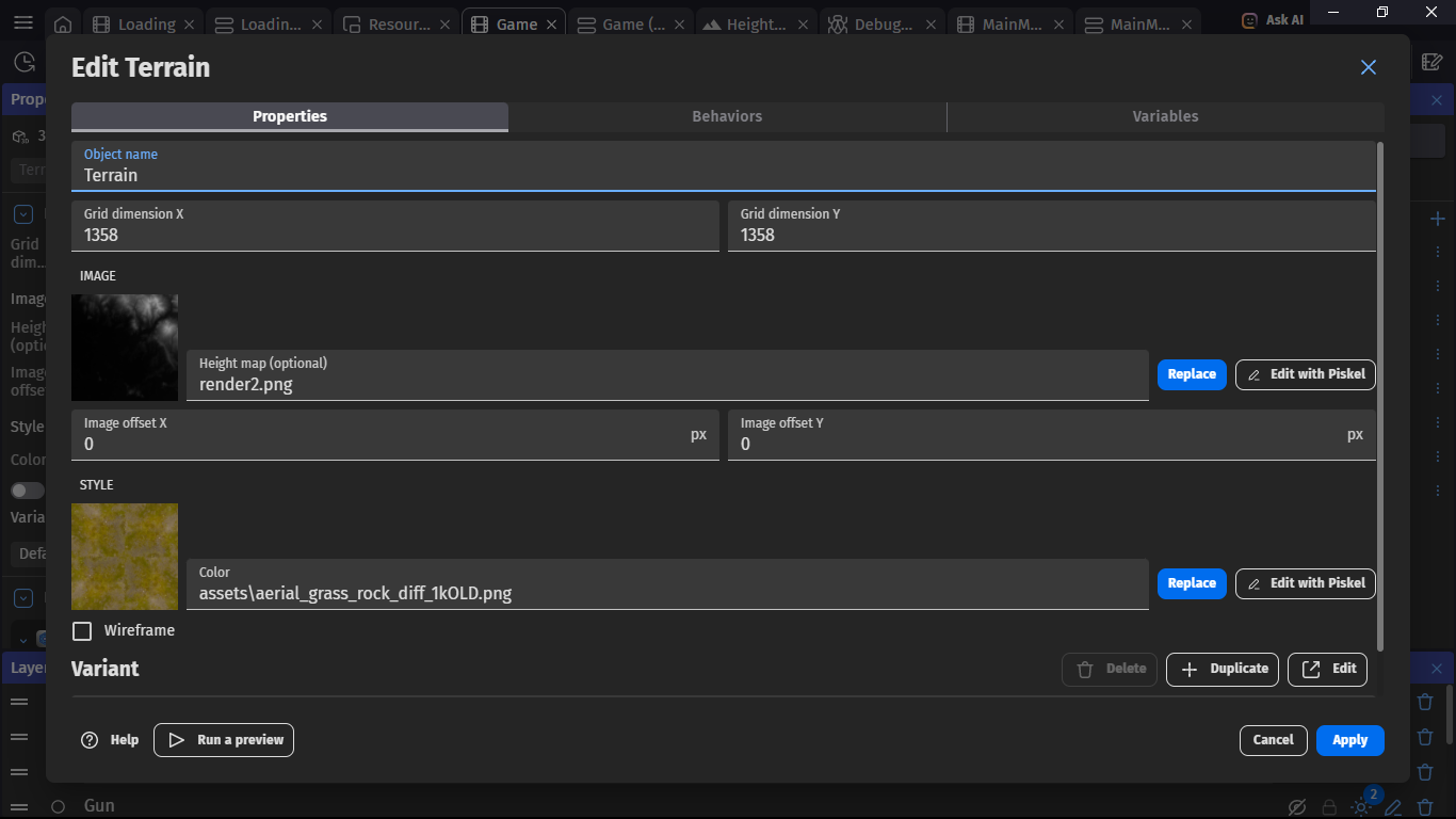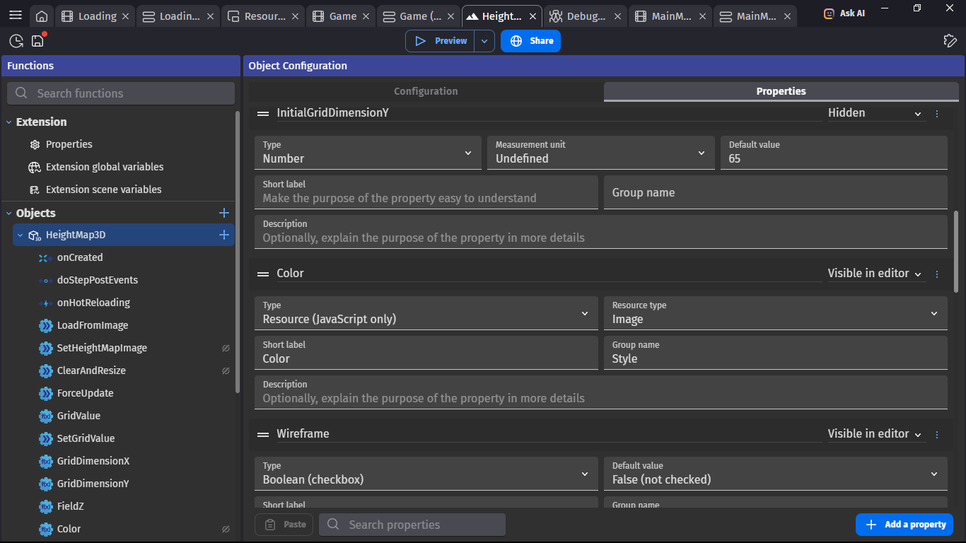 You also need to modify HeightMap objects properties so it want’s a texture instead of a color.