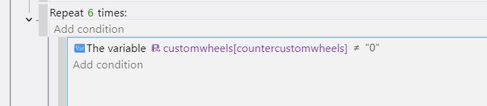 With the counter “countercustomwheels” and if the condition is true, I use another counter to count what I need.