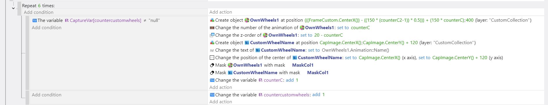 Players can save 6 of their own wheels and decide for themselves in which position.
