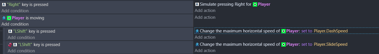 While holding right, if I hold Lshift then dash speed (works)