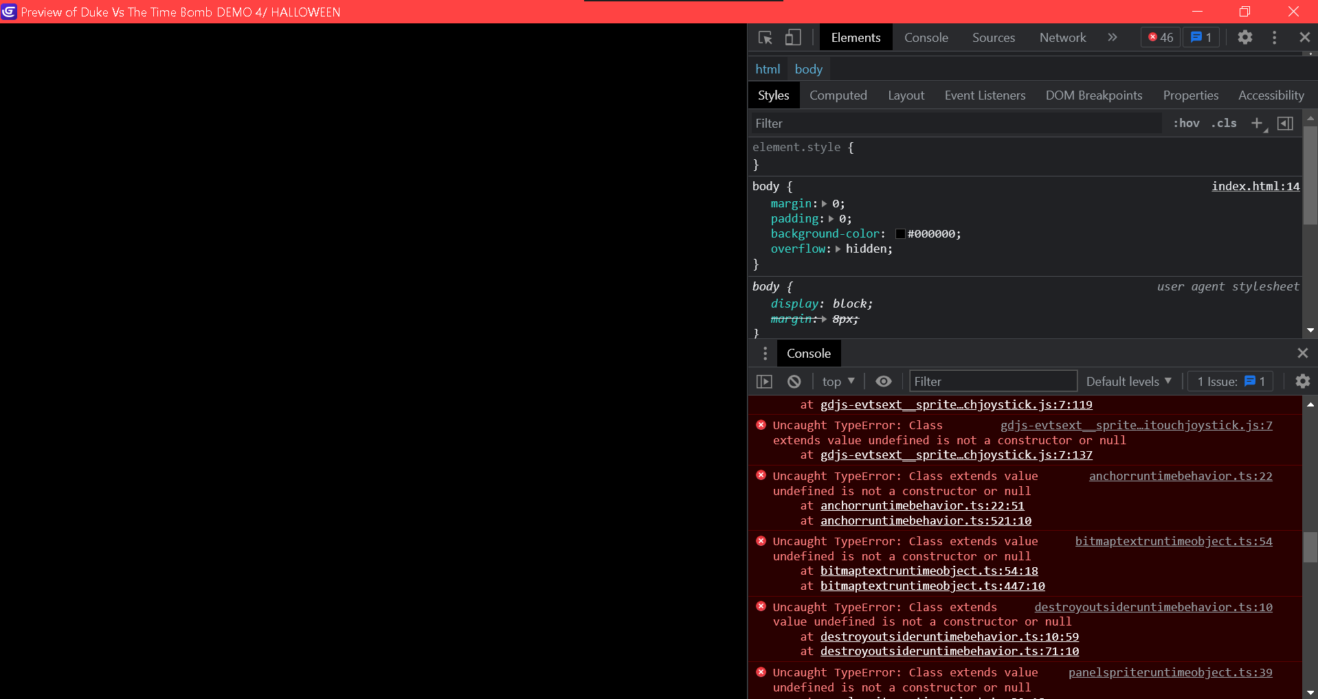 Today i was trying to preview my project but all i got is this black preview. So i opened the inspect and saw these errors: