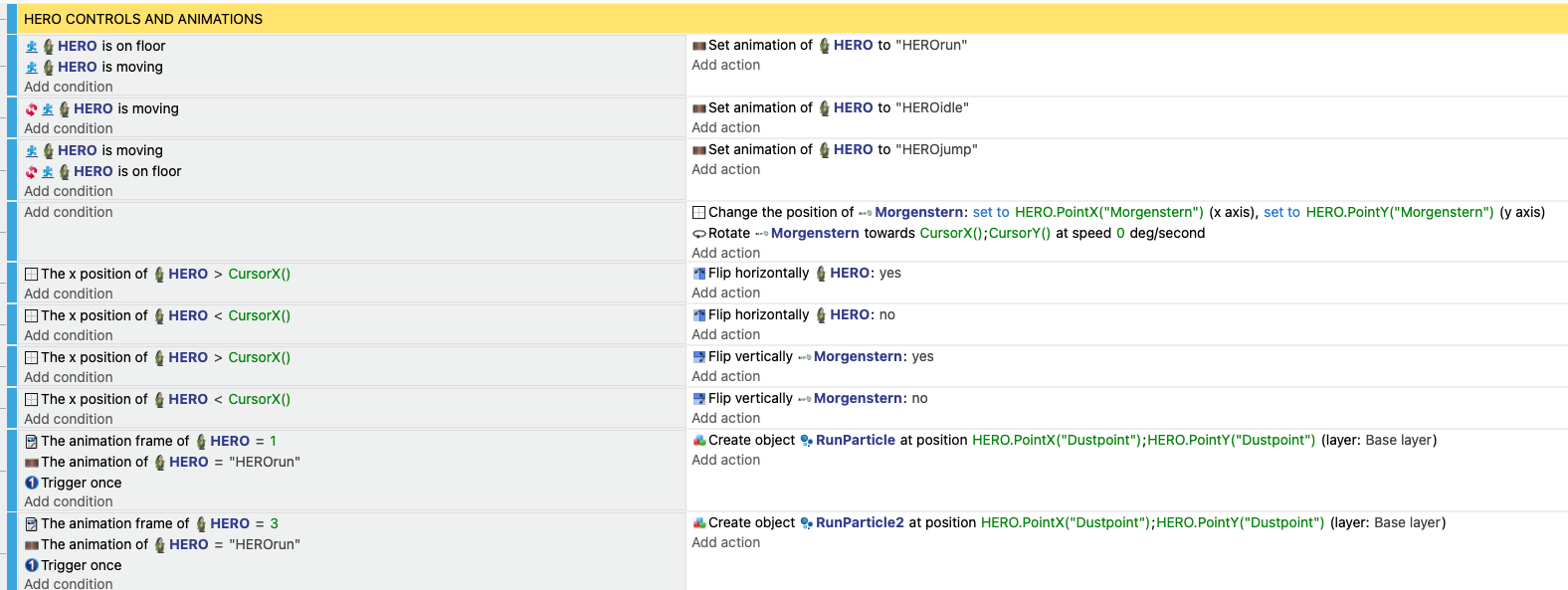 My problem is ledge grabbing. I can’t figure out how to condition it so that the character is facing the ledge while grabbing. I’d also prefer if I could point the weapon to the ledge so that he hangs with his mace.