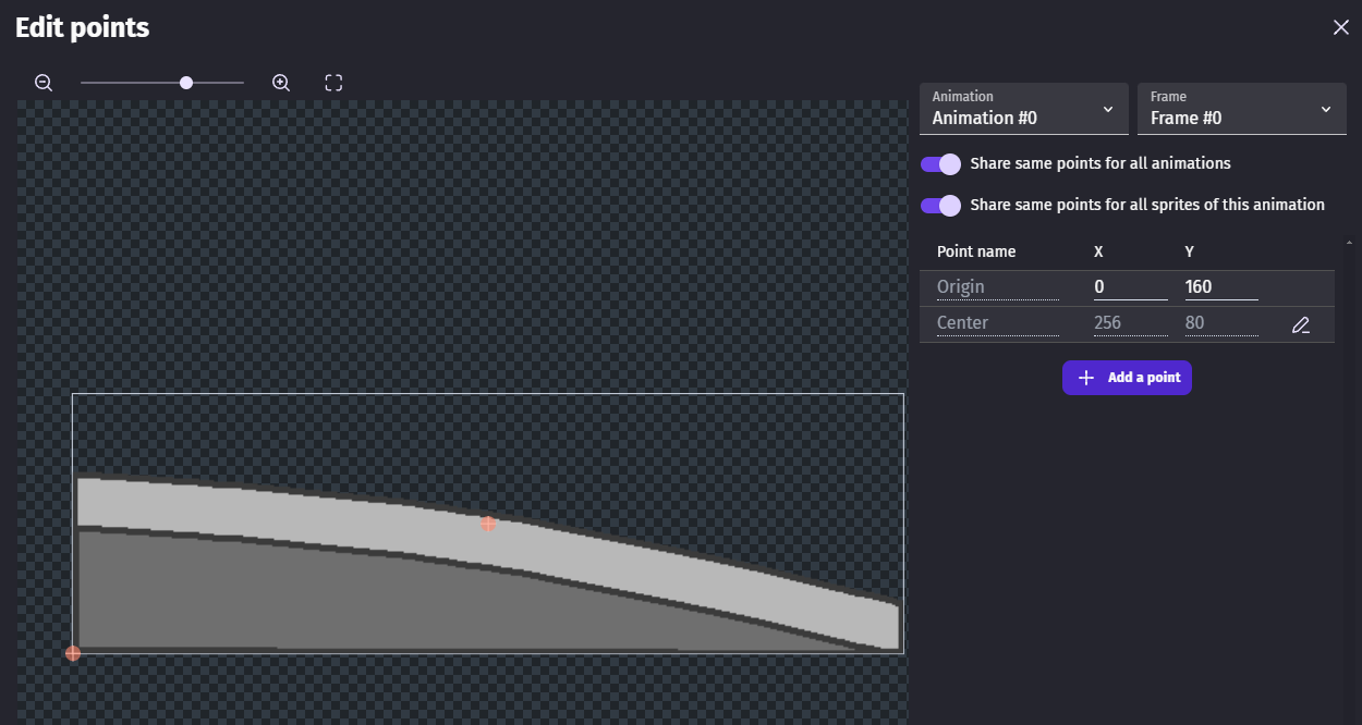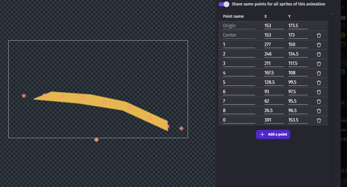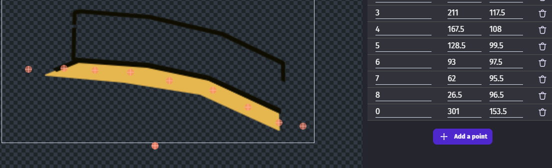The ramp surface object with points on doesn’t actually need a collision mask…just the line of points. The players points are at his feet