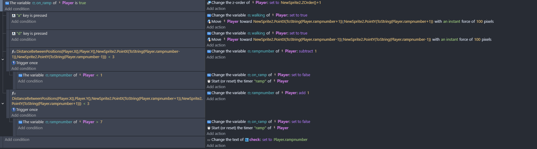 I only have one question: what does ‘‘seperate from’’ in your logic refer to? I assume that NewSprite2 refers to the actual ramp sprite, but I’m not sure about ‘‘seperate from’’. Is that the lower ‘‘dark orange’’ part of the ramp that you don’t make contact with?